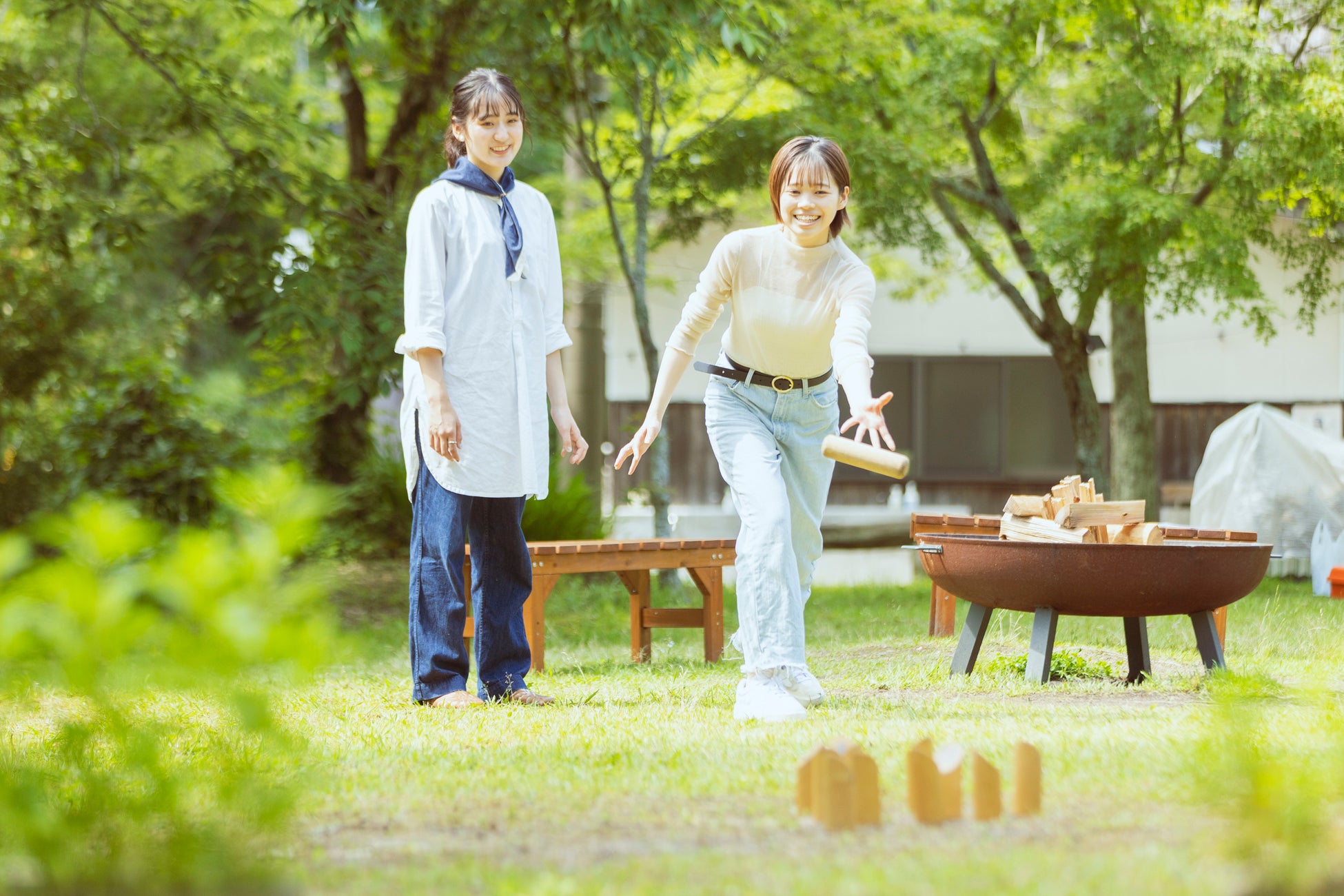 ◆青々とした芝生の上で、楽しむソト遊び