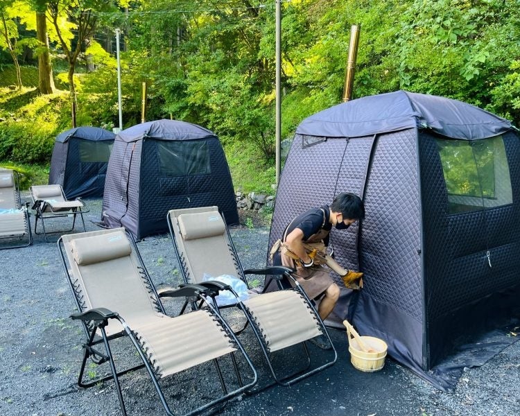 アクティビティは、近頃プライベートサウナとしても人気が高いテントサウナ。男女問わず、カップルでも一緒に入れるのがうれしいポイントです。