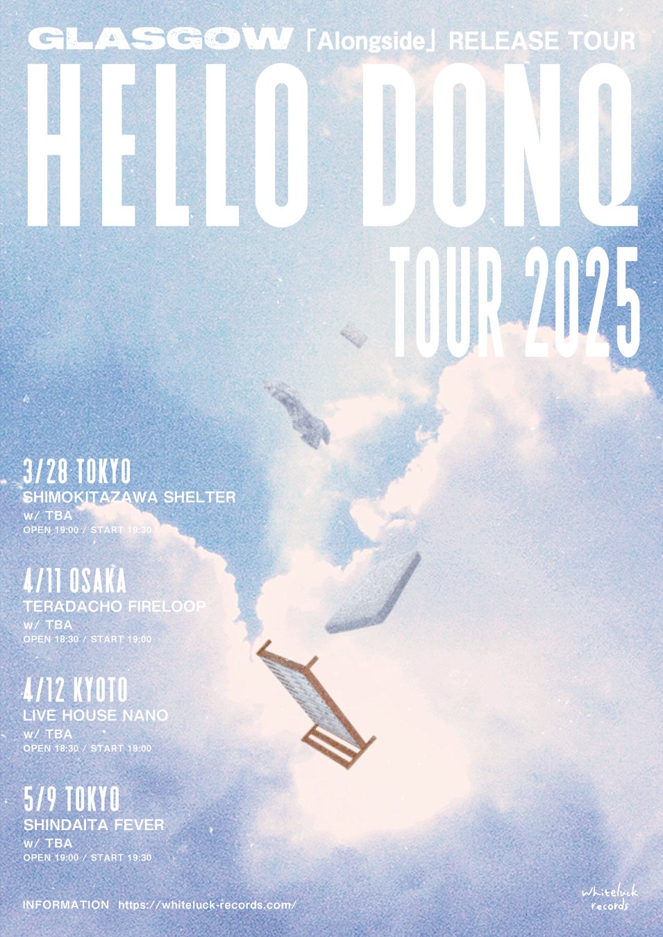 また、本作を携えてツアーを開催することも併せてアナウンスされた。3月に東京・下北沢SHELTERを皮切りに開催される『GLASGOW presents. HELLO DONQ TOUR』は全4公演、5/9(金)東京・新代田FEVERにてファイナルを迎える。各公演のゲストについては後日発表になるとのことで、こちらも楽しみに待ちたいと思う。