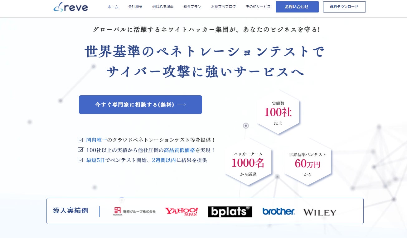 弊社は、ノーコード開発の分野で培った豊富な実績と経験を基に、お客様のビジネスサイトのセキュリティ対策にも力をいれております。セキュリティ対策(ペネトレーション・脆弱性診断)の導入実績としてYahoo JAPANや野原グループ株式会社など大手のクライアントとも多数取引をしております。弊社のセキュリティ対策は、世界的に活躍するホワイトハッカーと連携し、常に最新の脆弱性情報を反映させ、日々進化するサイバー脅威にもリアルタイムで対応することが可能です。
