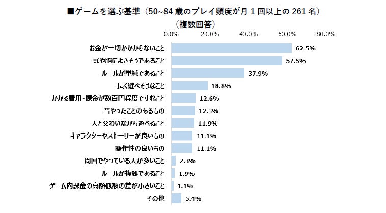 ゲームを選ぶ基準は、「お金がかからない」「頭や脳に良さそう」が2トップ