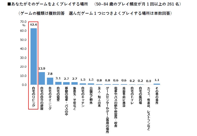 ・自宅のリビング、部屋、3位にダイニングが入っており、多くのシニアはゲームを自宅で楽しんでいる。