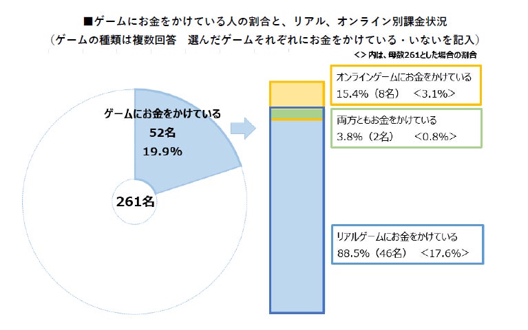 ・オンラインゲームへ課金している人はゲームにお金をかけている人全体のうち8名(15.4%)。