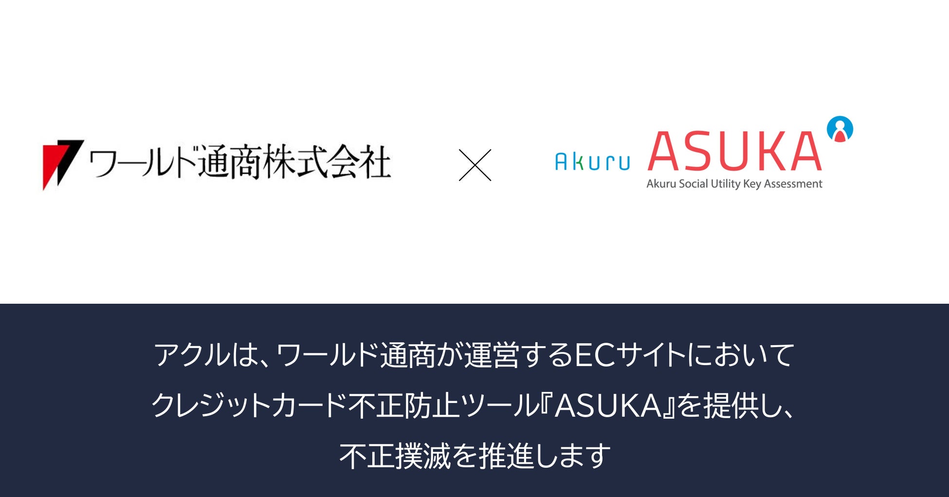 アクル、ワールド通商株式会社が運営する高級商材ECサイトに不正検知・認証システム「ASUKA」の提供を開始。