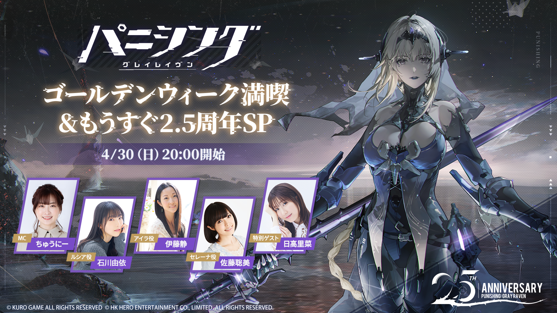 超爽快本格3DアクションRPG『パニシング:グレイレイヴン』公式生放送GW満喫&もうすぐ2.5周年SP配信決定!