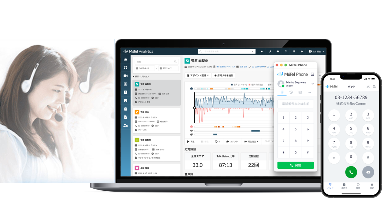 音声解析AI電話「MiiTel」は、インサイドセールス市場を中心に、営業やコールセンター業務におけるトークの可視化とセルフコーチング、リモートワーク体制構築にご活用いただいています。また、オンライン商談ツール「MiiTel for Zoom」は、複数人でのオンライン商談の解析や振り返りが可能となり、営業の成約率を飛躍させます。