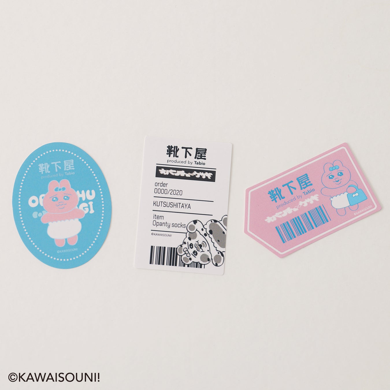 「おぱんちゅうさぎ」×「靴下屋」コラボソックスの展開を記念し、3種類のオリジナルステッカーをご用意。コラボソックスのお買い上げ1足につき、オリジナルステッカーをランダムに1枚プレゼントいたします。