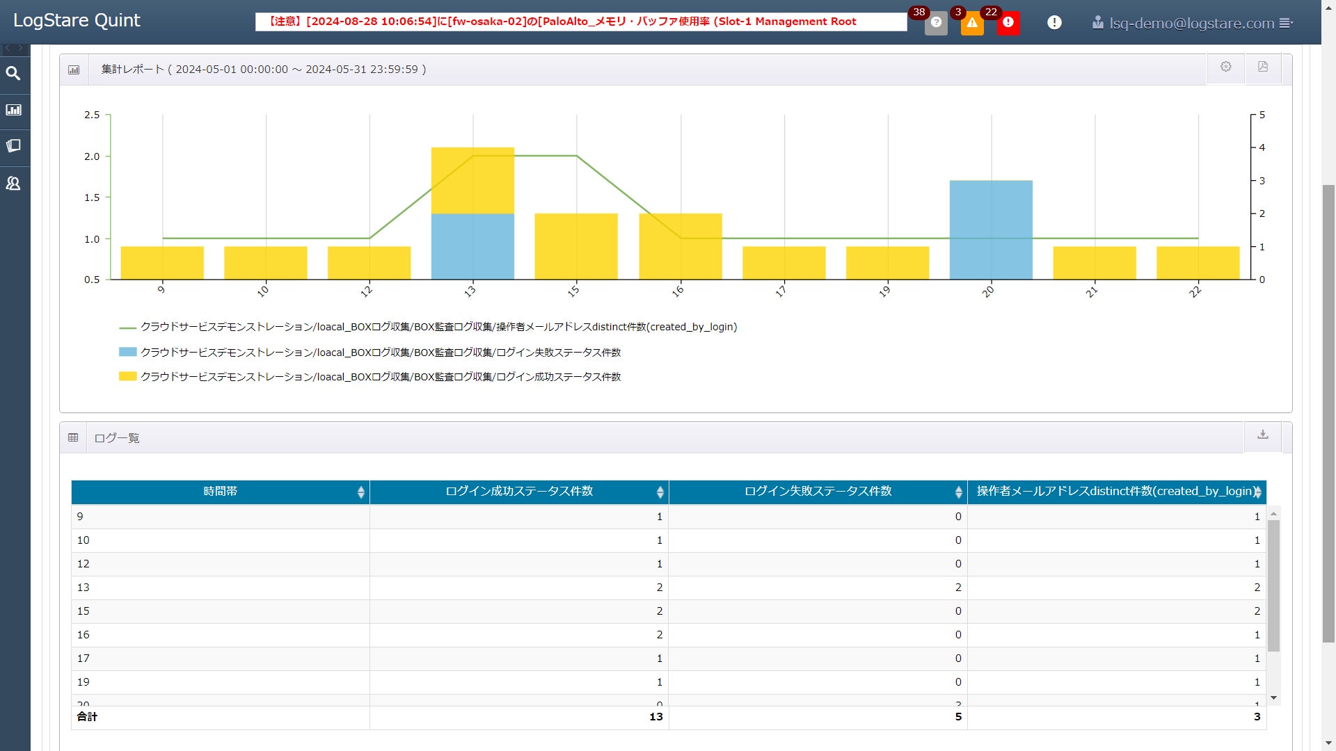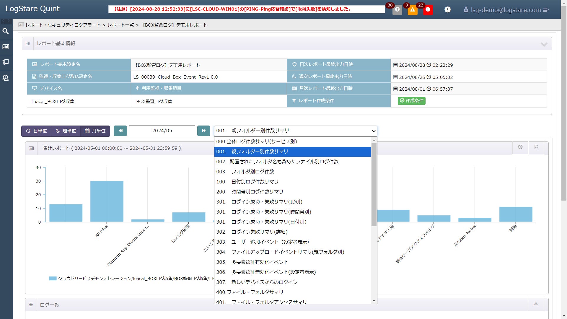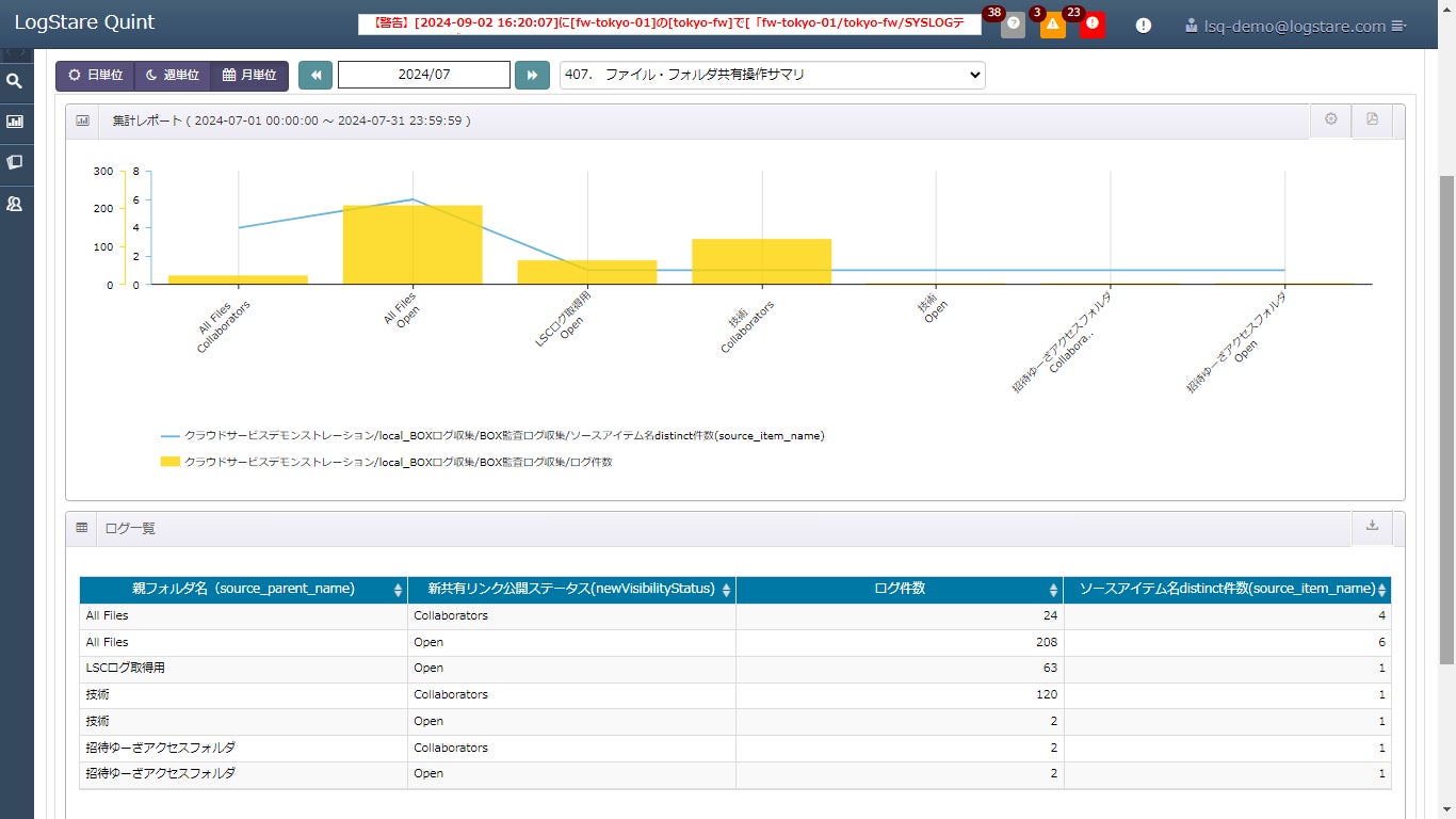 LogStareはこのBoxのログ分析を今年6月に開催された国内最大級のインターネットテクノロジーイベントInterop Tokyo 2024で先行して公開、日次・週次・月次で定期的にレポートを自動作成できることやセキュリティリスクと思しきイベントをアラート通知できることなど、ログ管理の自動化機能がBoxユーザーおよびBox販売店に好評でした。