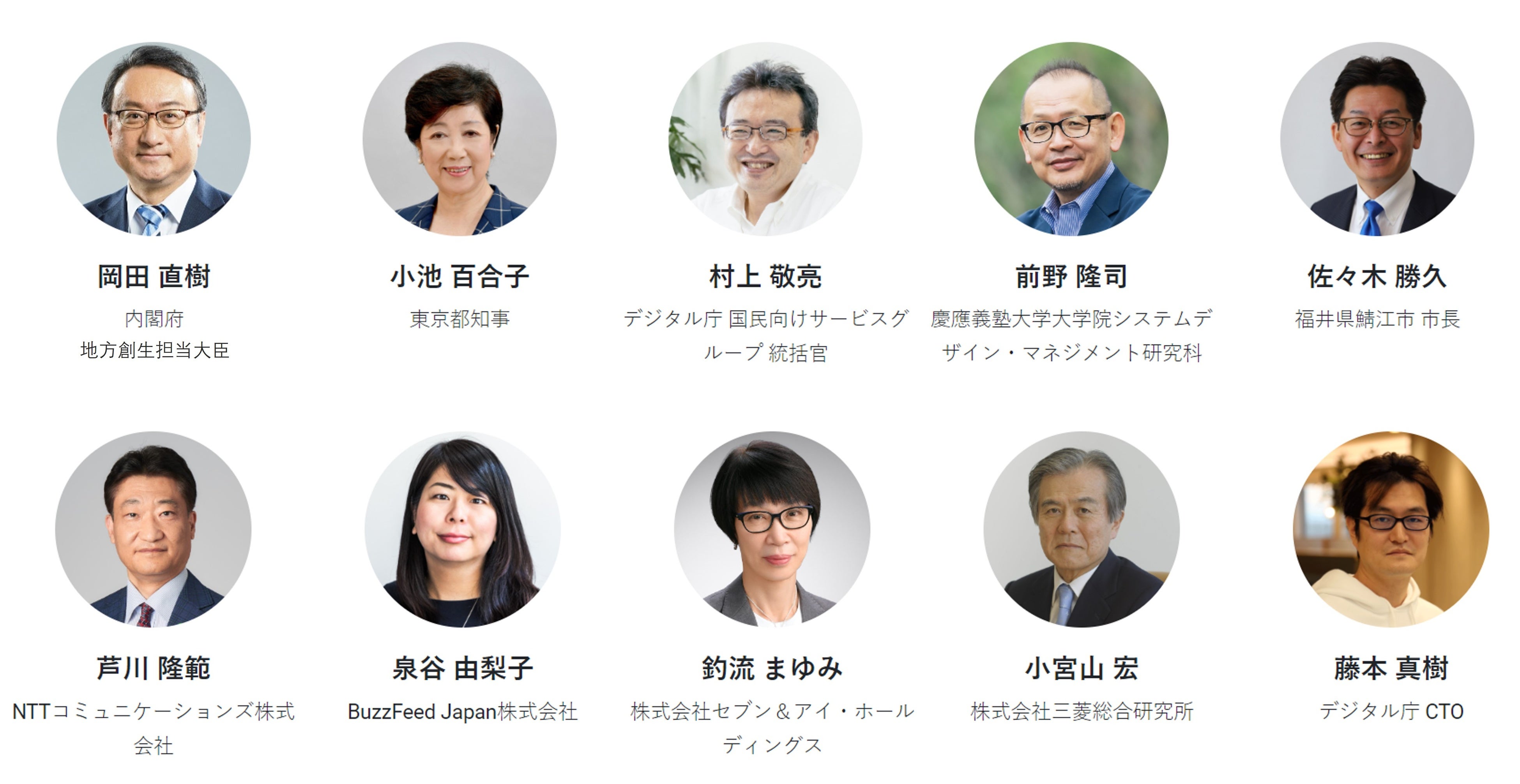 佐々木 勝久 氏(福井県鯖江市 市長)、芦川 隆範 氏(NTTコミュニケーションズ(株))、釣流 まゆみ 氏((株)セブン&アイ・ホールディングス)、泉谷 由梨子 氏(BuzzFeed Japan(株))、笹谷 秀光 氏