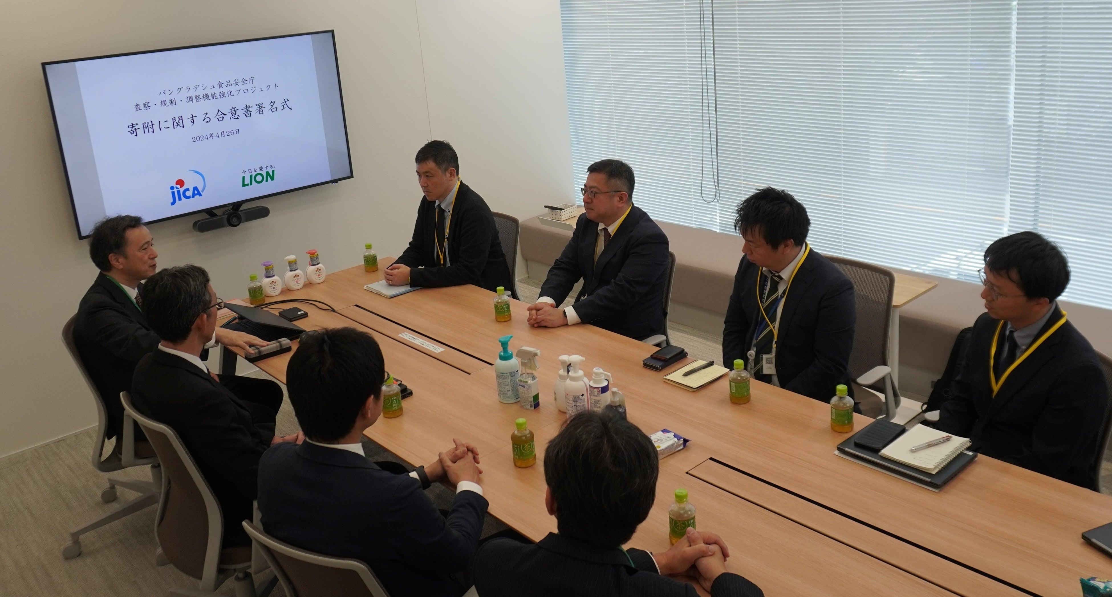 今般、ライオン株式会社様より、バングラデシュ国における衛生改善活動貢献を目的とした寄附をいただき、心より感謝申し上げます。本寄附金は、現在実施中の「バングラデシュにおける食品安全庁査察・規制・調整機能強化プロジェクト」において、小学生の手洗啓発活動(食品安全に係る紙芝居等)に活用される予定です。