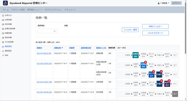 「LCM運用サービス」は、お客様のPCライフサイクル(運用管理)を当社が代行するサービスです。煩雑で業務負荷が大きいPCの運用管理をアウトソーシングすることで、IT部門の業務全体を効率化し、本来注力すべき業務に集中できる環境の実現をサポートします。2022年のサービスリニューアル以後、従来行っていた電話やメールでのやり取りに代わり、LCM専用のWebポータルで作業依頼・受付・作業進捗・着荷予定日などを確認できるようになり、お客様の利便性および業務効率化に大きく貢献しております。