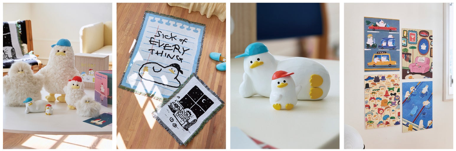 昨年11月に韓国の聖水(ソンス)で開催されたPOP-UPで人気を博した、SSEBONGRAMAの暖かなアートワークを活かしたポストカードブックやポスター、アートフィギュアや日常でお使いいただけるブランケットなど、幅広くご用意しています。