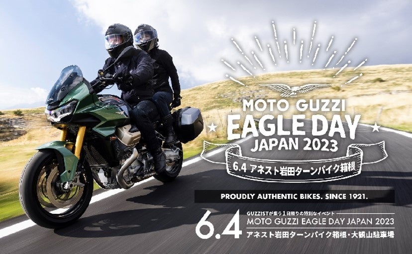 ピアッジオグループジャパン株式会社(本社:東京都港区芝2丁目、代表取締役:ネリ・ミクラウス)は、モト・グッツィのオーナーやモーターサイクルファンが自由に参加できるミーティングイベント「MOTO GUZZI EAGLE DAY JAPAN 2023」を、2023年6月4日(日曜日)にアネスト岩田ターンパイク箱根 大観山駐車場にて開催します。 [URL: https://www.motoguzzi.com/jp_JA/moto-guzzi-world/events/eagle-day/?id=prt]