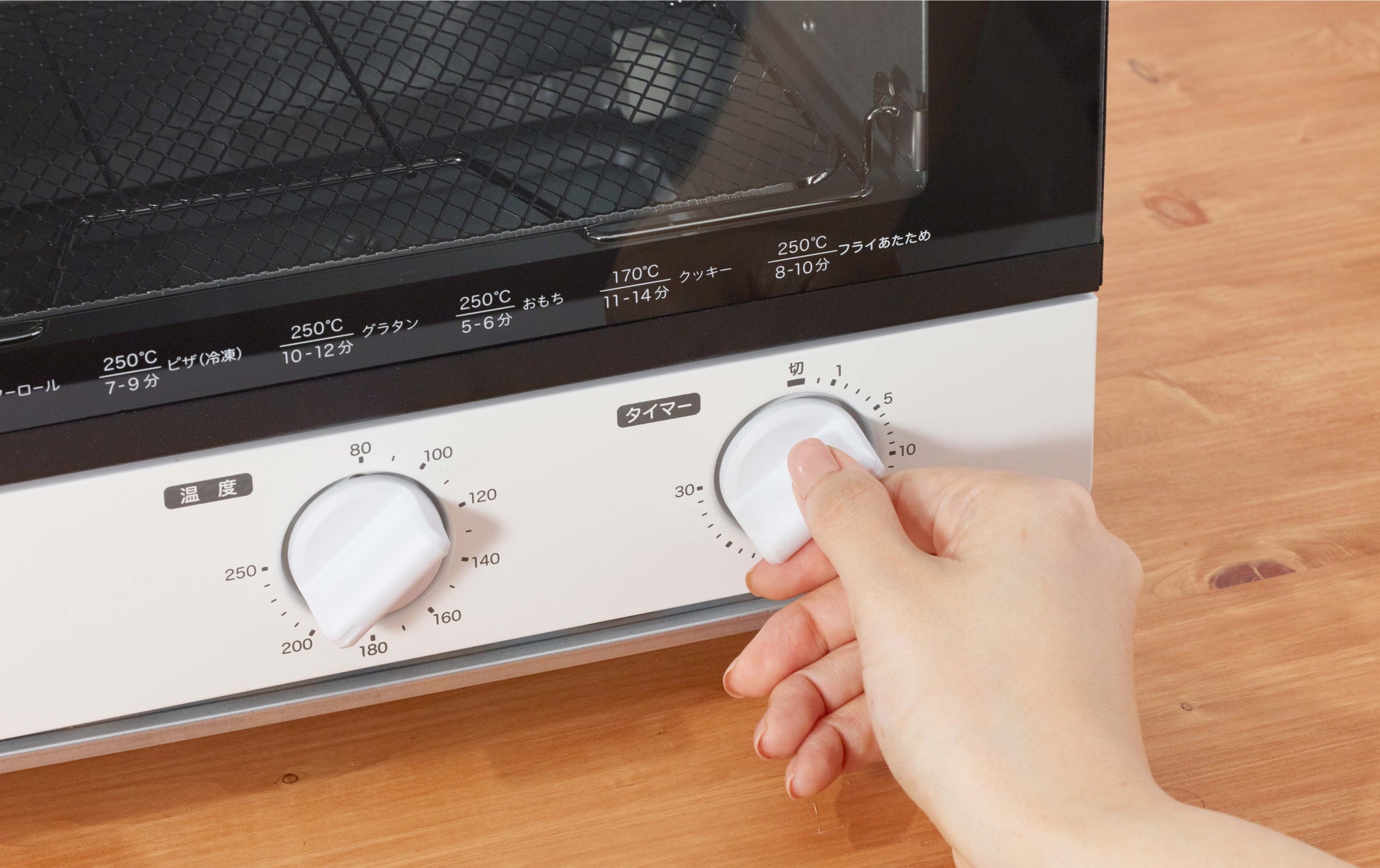 タイマーは最大30分、温度は80℃~250℃まで無段階で設定できるため、幅広いお料理に対応します。上下4本のヒーターで、ムラなくこんがりと焼きあげます。