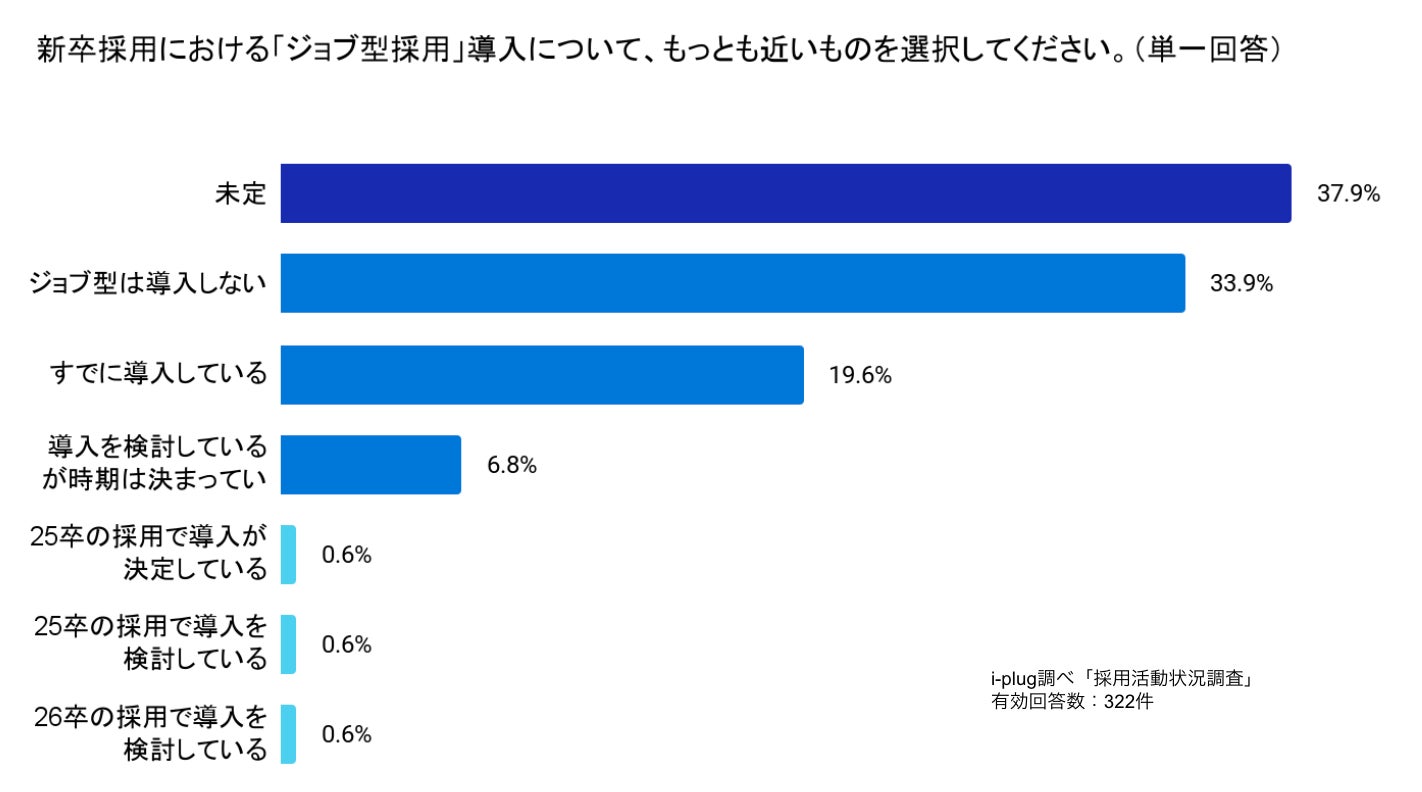 企業を対象に実施したアンケートでは「ジョブ型採用」の導入に関する質問に対し「未定」と回答した企業が37.9%でした。「導入しない」と回答した企業は33.9%となりました。