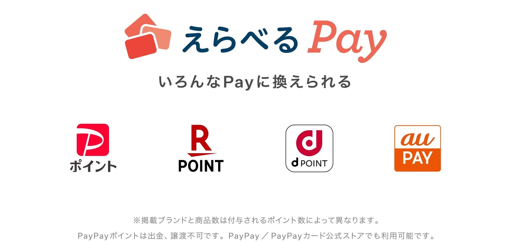「えらべるPay」は、ポイントやPay系の商品を自由に選べるギフトです。ポイント内であれば複数のギフトと自由に交換することができます。「えらべるPay」の利用に専用アプリのダウンロードや会員登録は必要ありません。
