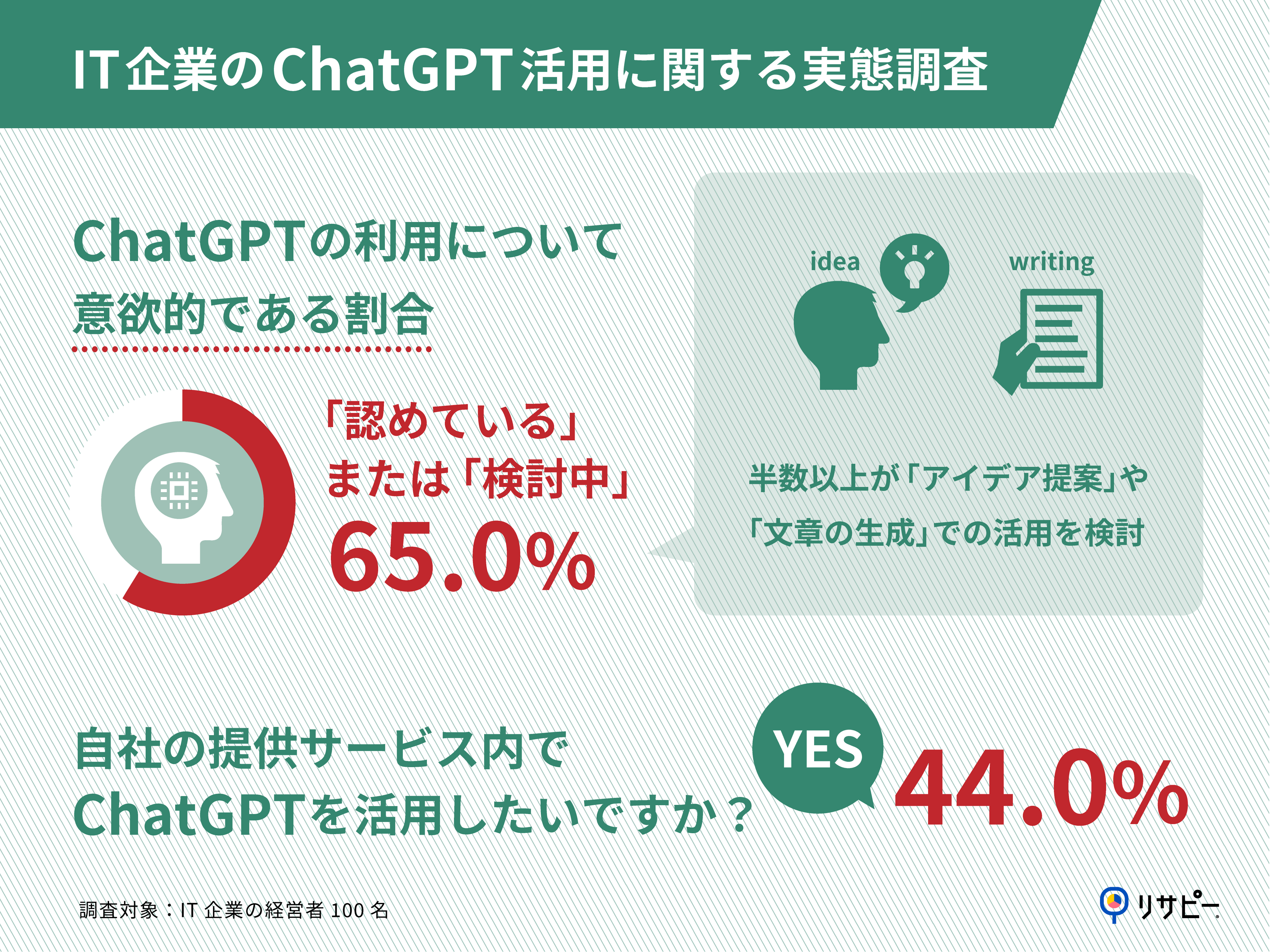 今回は、IT企業の経営者100名を対象に、IT企業のChatGPT活用に関する実態調査を実施を実施しました。