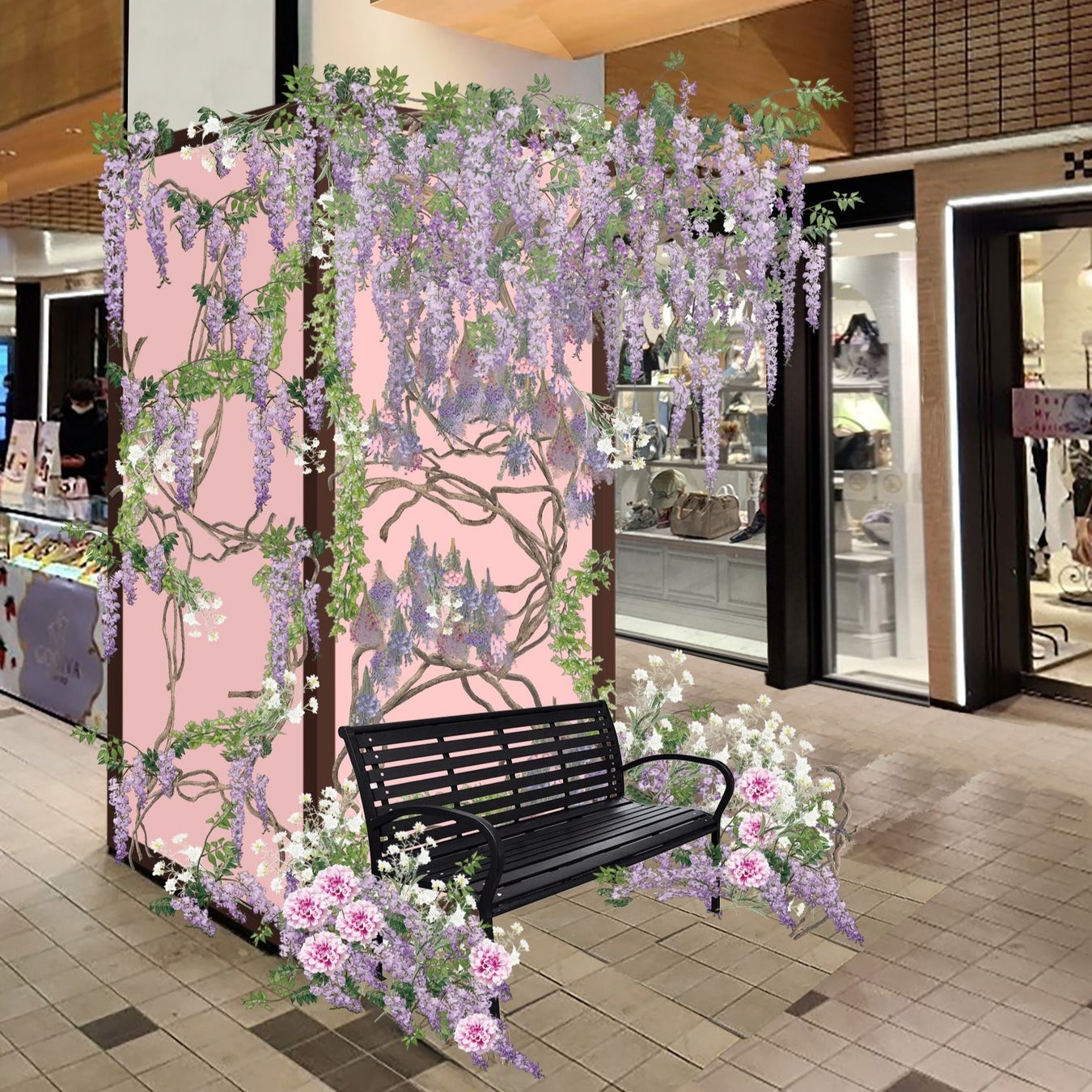 「レミルフォイユ ドゥ リベルテ」のドライフラワーで、4階吹抜広場を品川区のカラー「品川パープル(紫色)」に装飾。装飾で使用した花はお客さまへ配布します