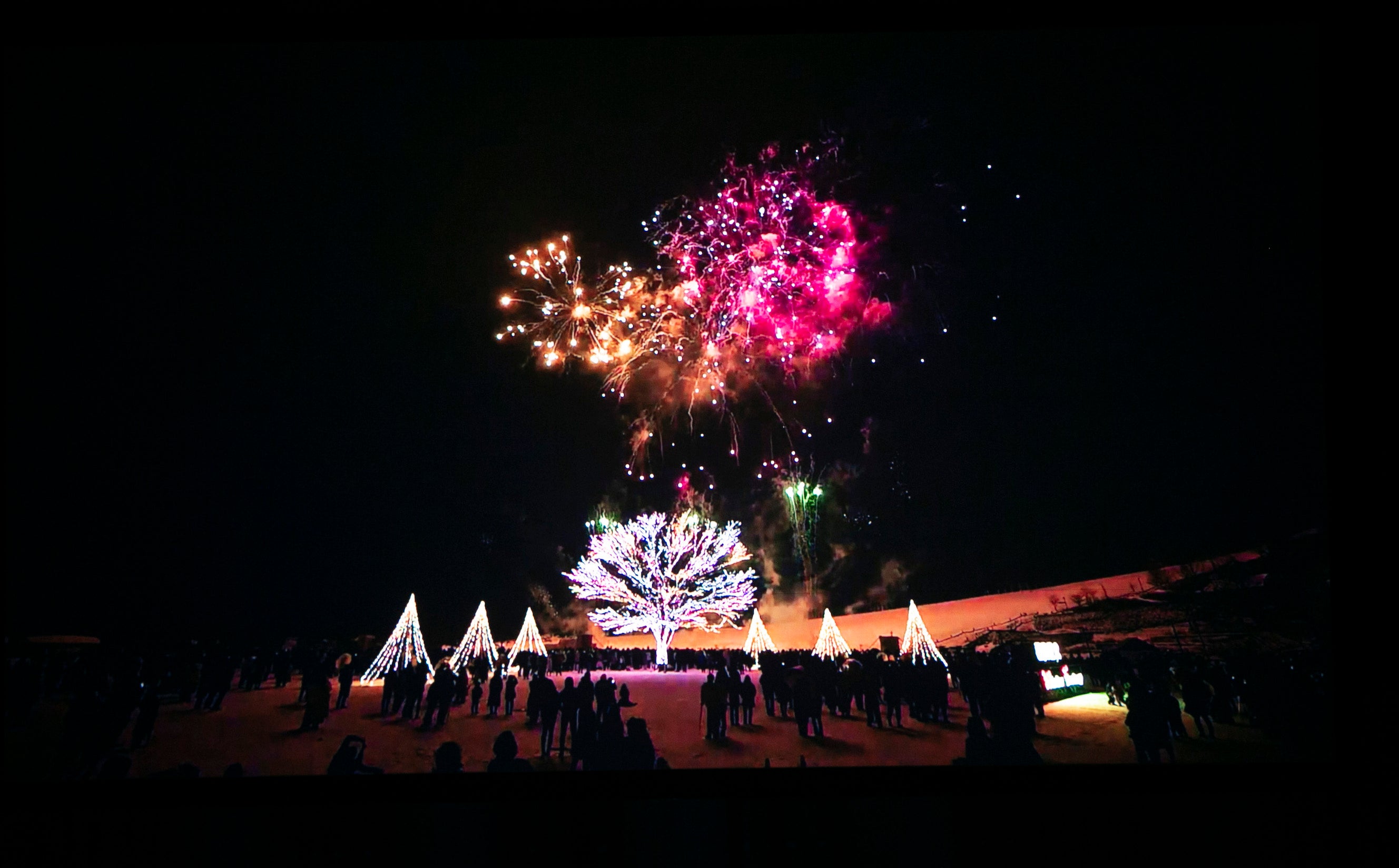 その後、国営越後丘陵公園で開催の長岡花火ウインターファンタジーの会場から、大型モニターで花火の生中継が行われた。今回の花火プログラムには、『米百俵フェス』のオリジナルもある。NPO法人YELL FOR CHILDREN JAPAN presents 東日本大震災10年「慰霊・復興・希望の花火」と、新潟大学附属長岡小学校の生徒が歌った米フェスのテーマソング『輝き』に載せた「米百俵フェスオリジナル超大型スターマイン『輝き』」が打ち上げられ、冬の夜空を彩った。そして最後は、長岡市民の心の支えとなっている「復興祈願花火フェニックス Jupiter」のウインターファンタジーバージョン。大きな不死鳥が夜空を舞い、誰もが満足した表情で帰路についた。