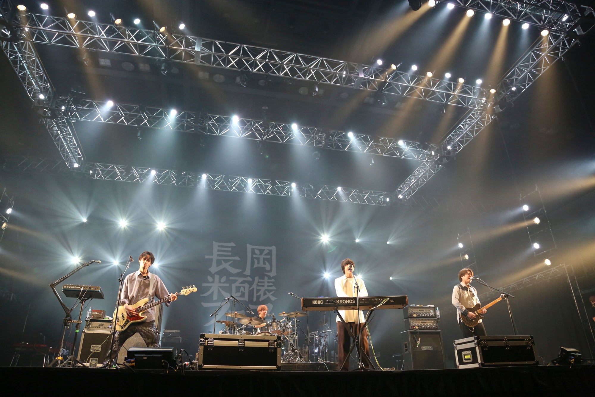 ピアノとギターを自ら演奏し、かつ自分の声も楽器のように自由自在に操るボーカル・井上竜馬の声が心地よい。『Masquerade』『Over You』の2曲を歌うと、ギターの服部栞汰から「長岡に初めて来られて、嬉しいです。好きなように楽しんでもらって、僕らも最高の思い出をつくって帰りたいなと思っています」というトークから『Higher』へと続いた。