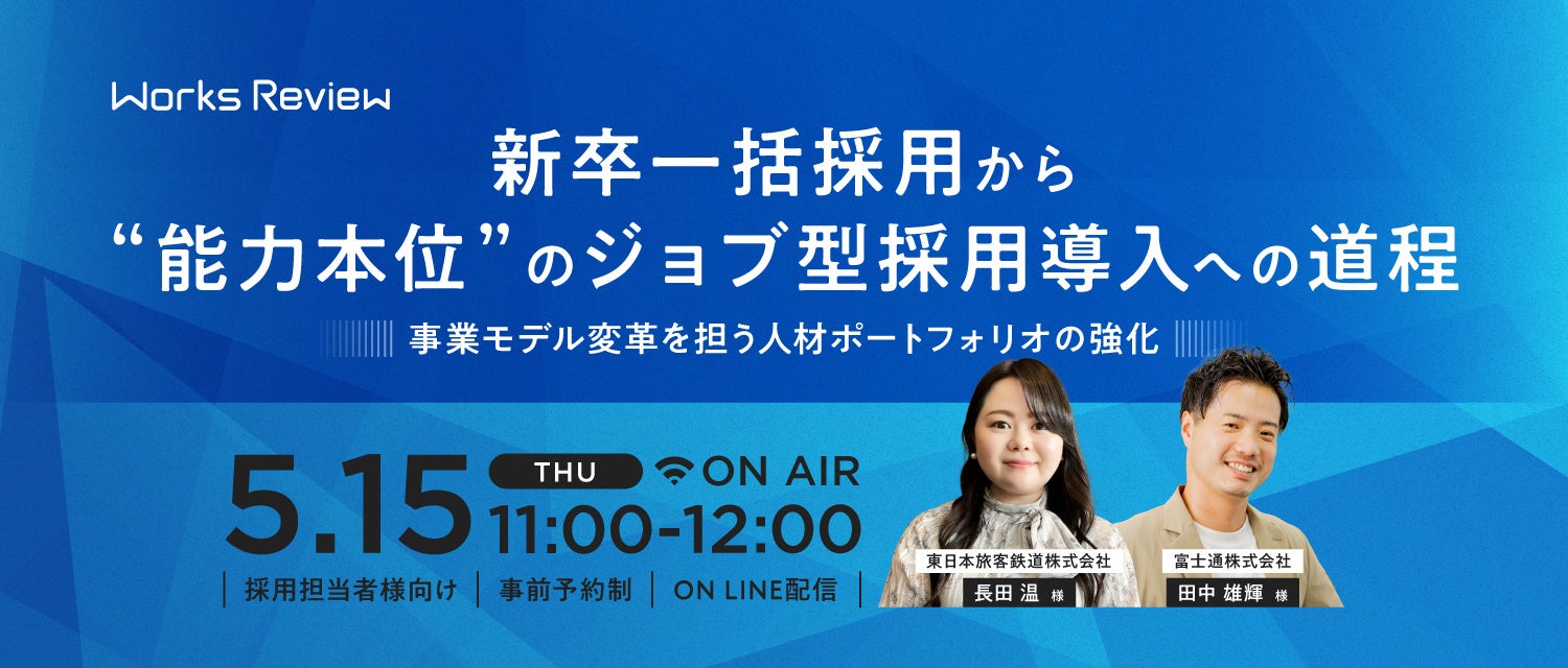 株式会社ワークス・ジャパン(本社:東京都千代田区、代表取締役:清水信一郎)は、2025年5月15日(木)に企業の人事担当者及び人材開発担当者を対象にしたオンラインフォーラム、WORKS REVIEW『新卒一括採用から”能力本位”のジョブ型採用導入への道程 ~事業モデル変革を担う人材ポートフォリオの強化~』を開催します。