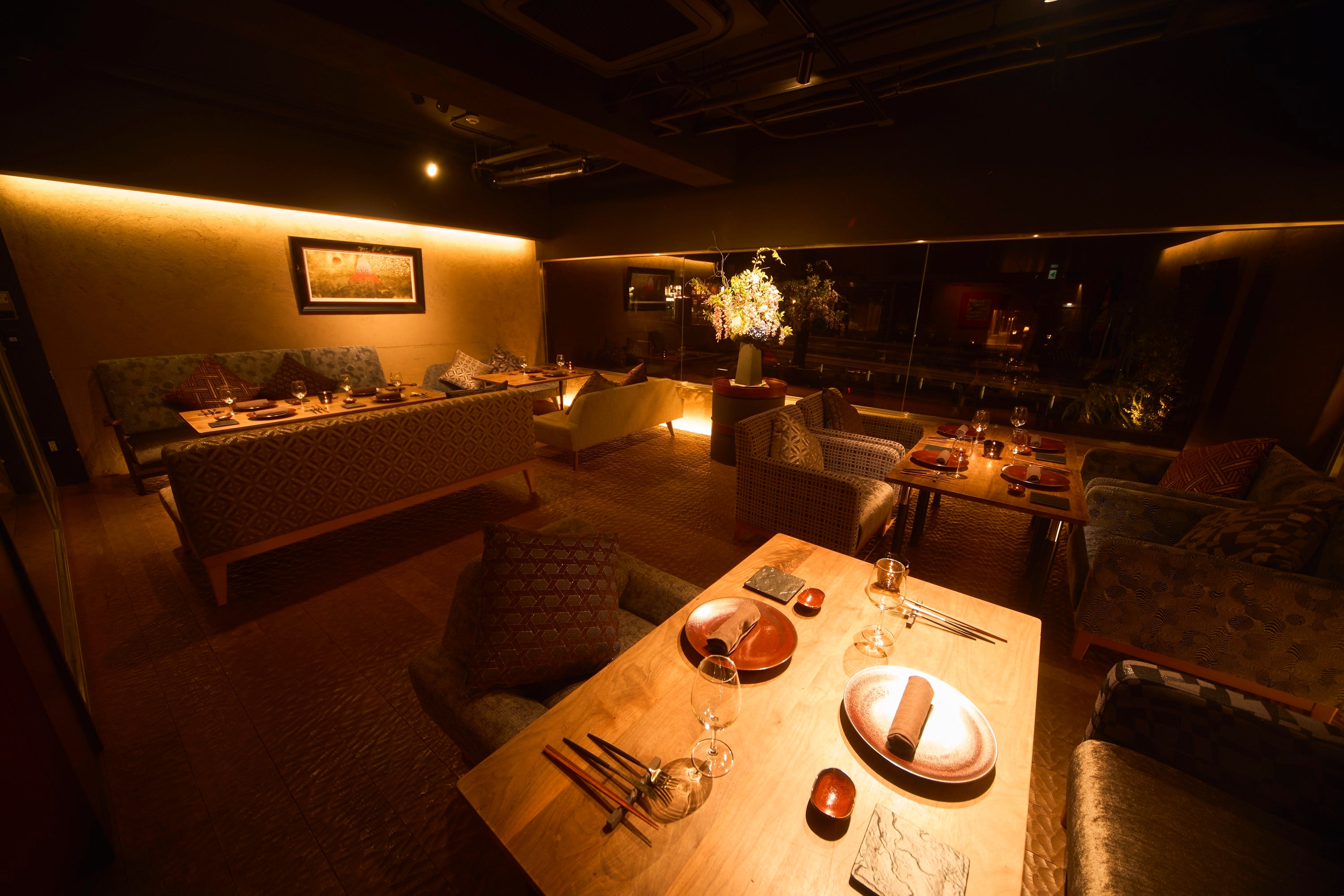 1階にはメインダイニング Bar & Restaurant COCONOMA。日常にほんの少しのスパイスを提供する「大人のための空間」バーカウンターではお1人でも楽しめるバー空間を新設しました。西麻布で軽く1杯飲みたい。宿泊の前に1杯などご希望に合わせてご利用いただけます。