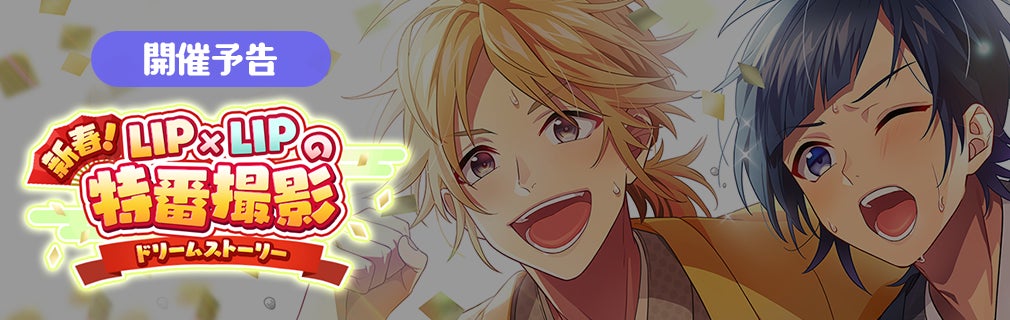 1月はお正月にちなんだイベントが盛りだくさん!ストーリーイベントでは、LIP×LIPの愛蔵と勇次郎の2人がお正月の特番で対決する様子を描いた『新春!LIP×LIPの特番撮影~ドリームストーリー~』の開催や、新年早々何やら気まずい雰囲気の健とアリサの様子を描く『初詣、君に参り~カラフルストーリー~』をお届けいたします。