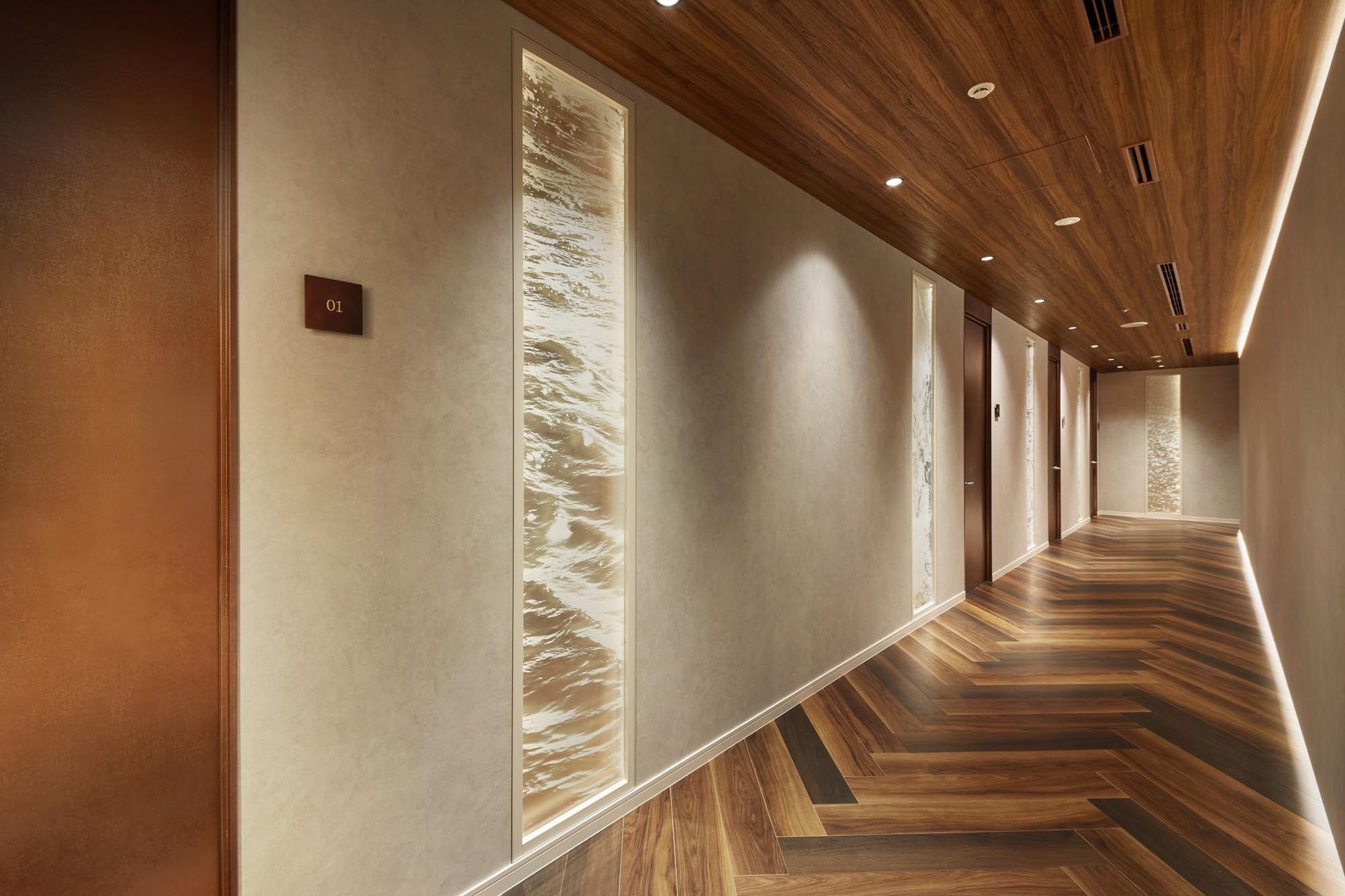 間接照明や木調を取り入れた天井・床面、座り心地や配置に配慮したインテリア・調度品など、“おもてなし”にこだわったラグジュアリーで落ち着いた空間です。