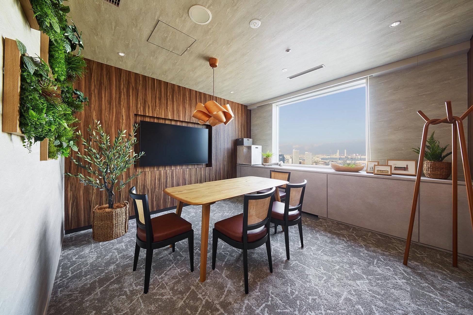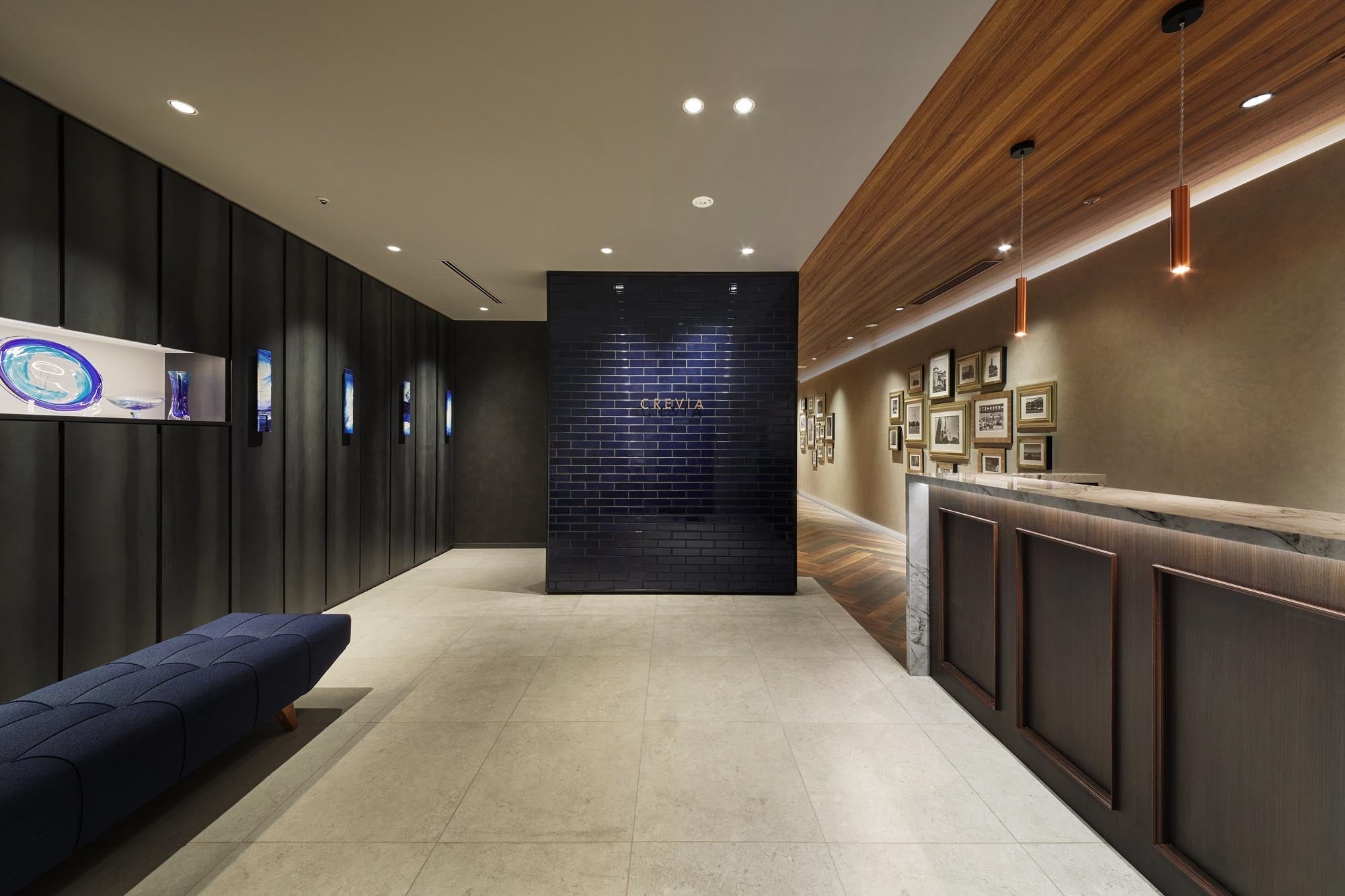 本ギャラリーは、『CREVIA』が大切にしている「五感」をテーマに空間づくりを行いました。ほのかに漂う香り、耳に心地よい音楽、目に映る空間美、ふとした家具の手触りなどを感じていただける空間で、地元横浜の銘菓や美しい景色を味わいながらお過ごしいただけます。
