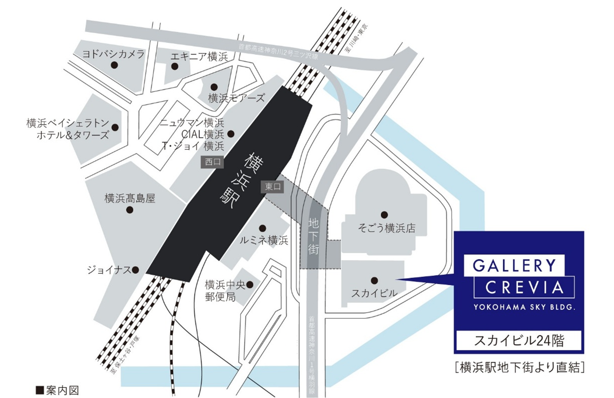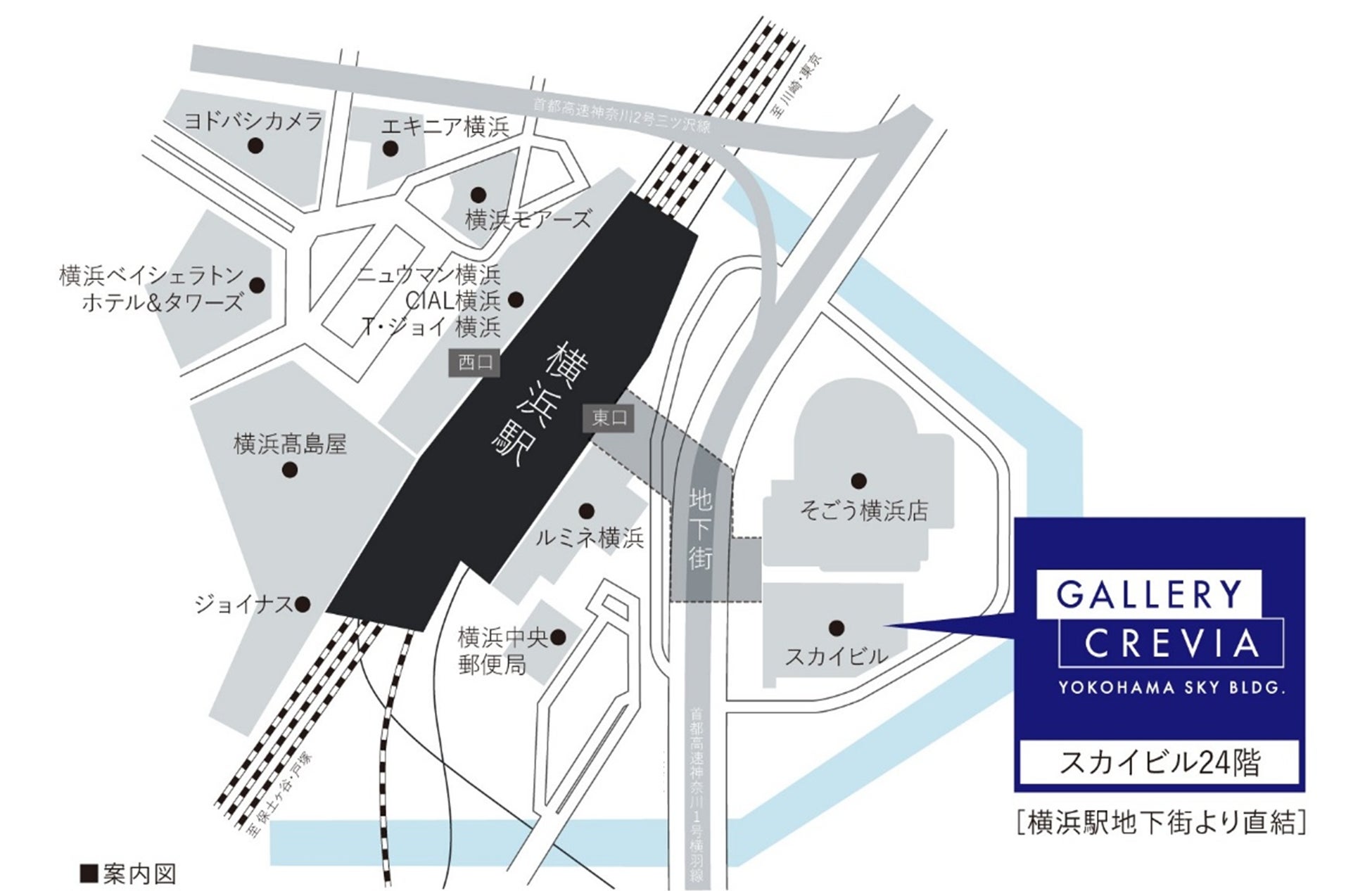本ギャラリーは、JR・京急線、東急東横線、みなとみらい線、横浜市営地下鉄線など多路線が利用できるターミナル駅「横浜」駅の地下街からダイレクトにアクセスでき、平日の仕事帰りはもちろん、週末にも気軽に立ち寄れる立地です。