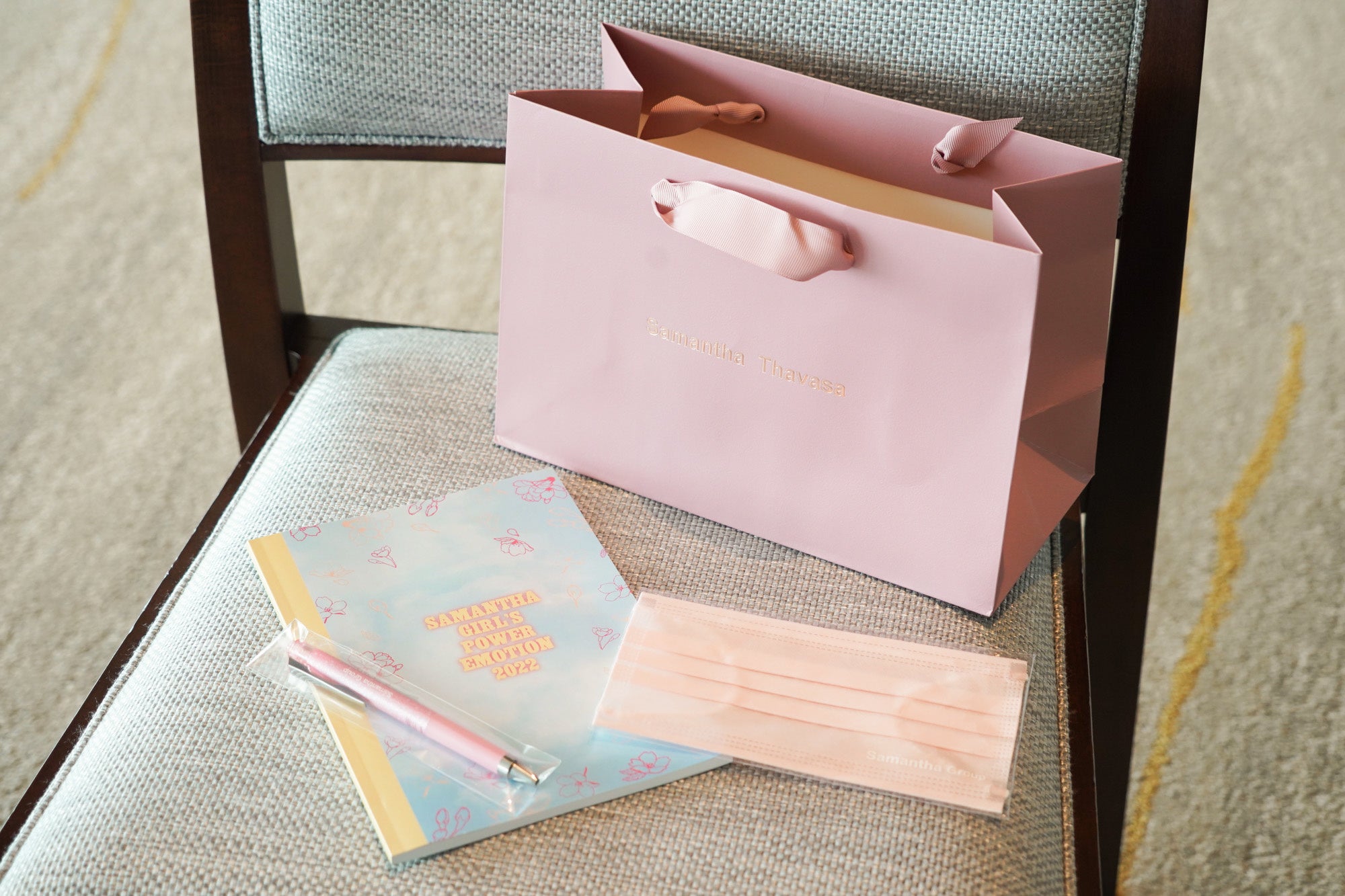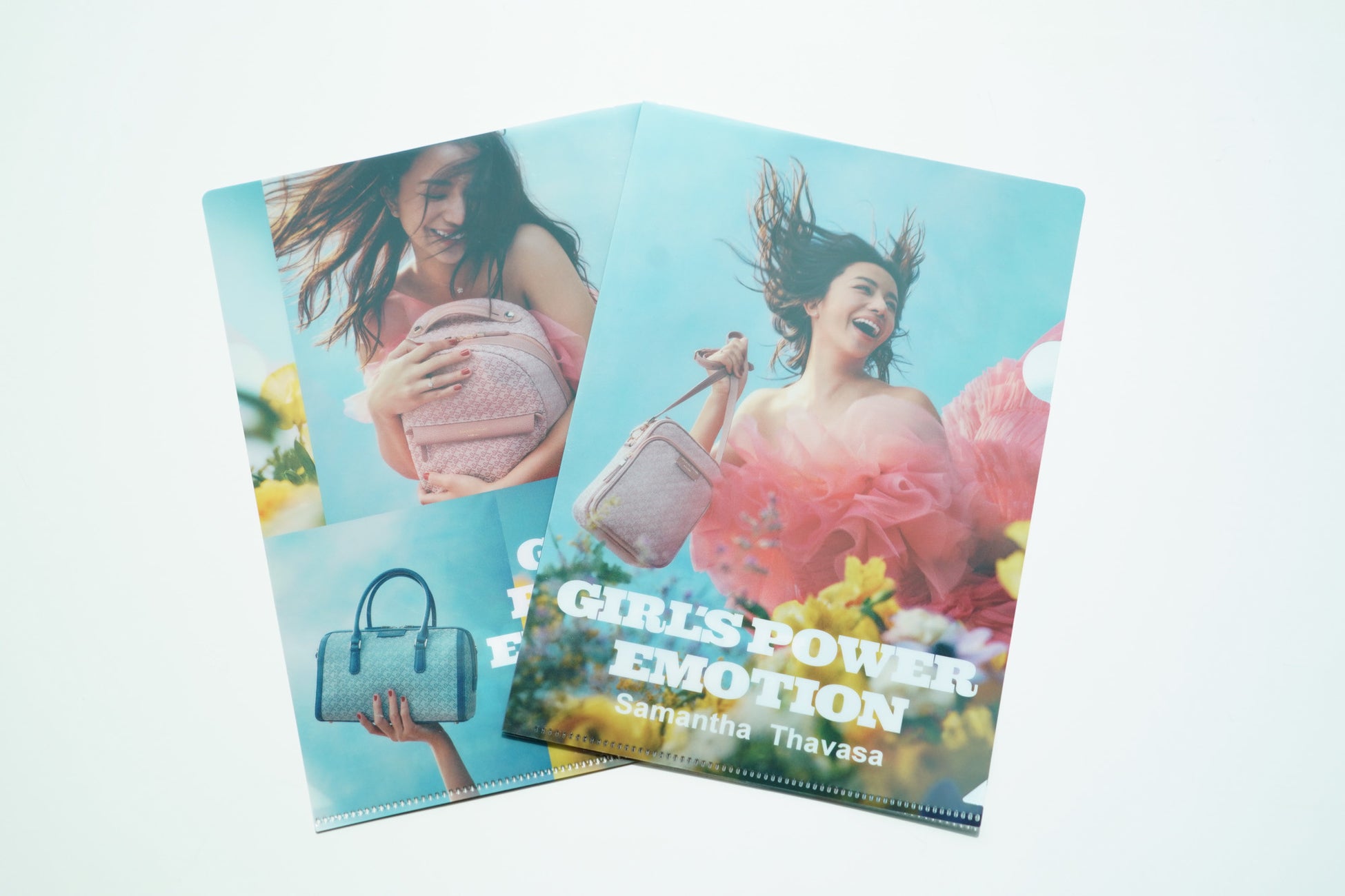 また、新入社員のたちへ、新ビジュアルのクリアファイルやサマンサオリジナル文房具のプレゼントもあり