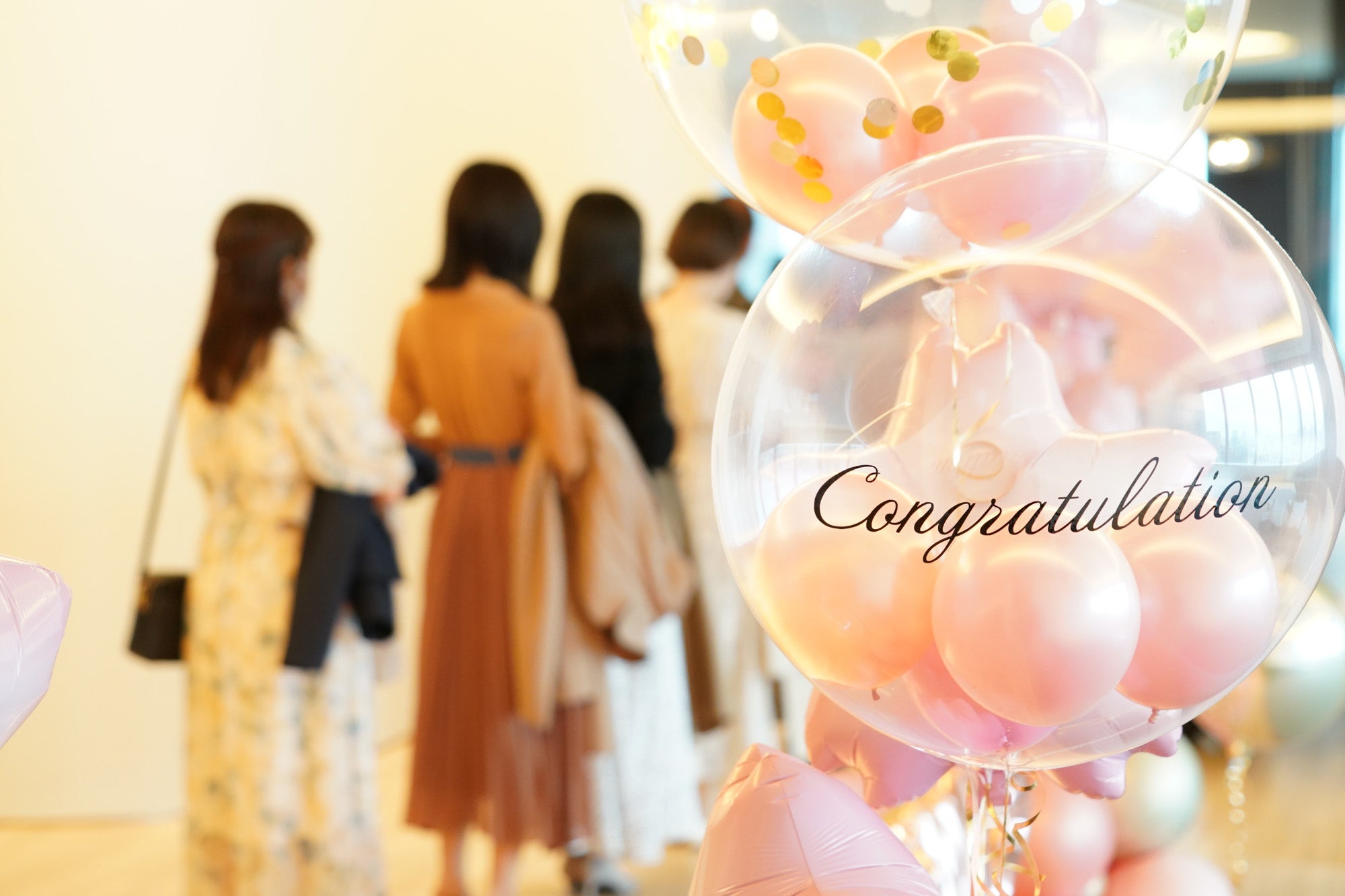 会場の外には、可愛いフォトスポットが設置され、新入社員たちが笑顔で写真を取り合う姿が印象的でした。