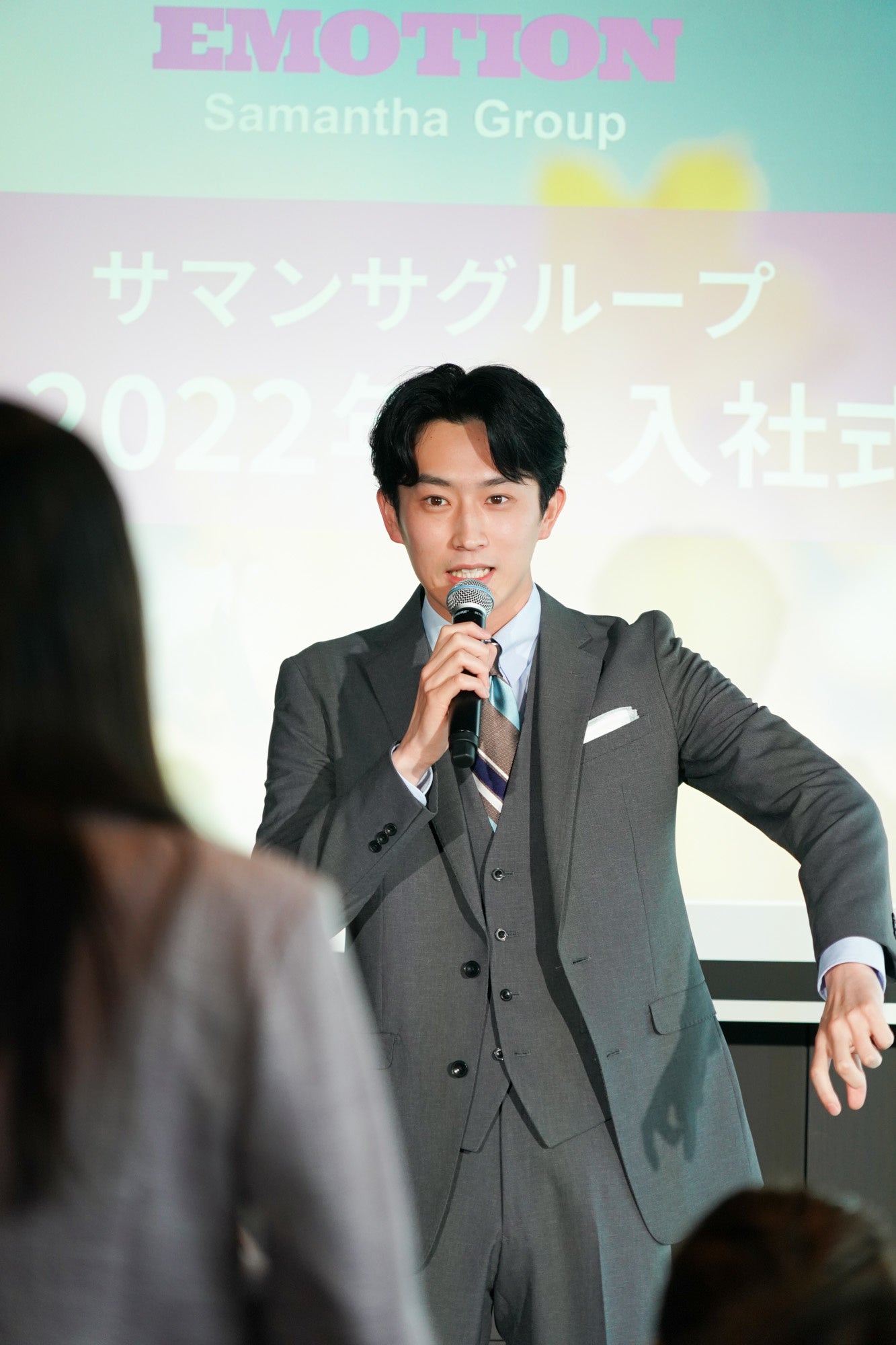 サマンサグループ3年ぶりオフライン開催の入社式に杉野遥亮さんがサプライズで登場し新入社員を激励!