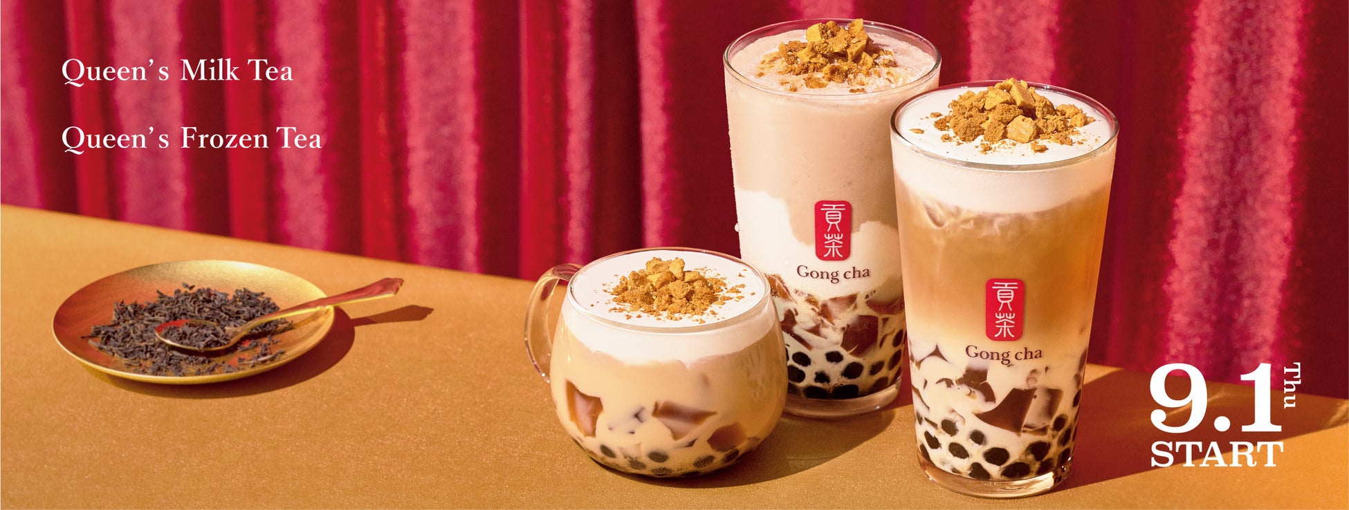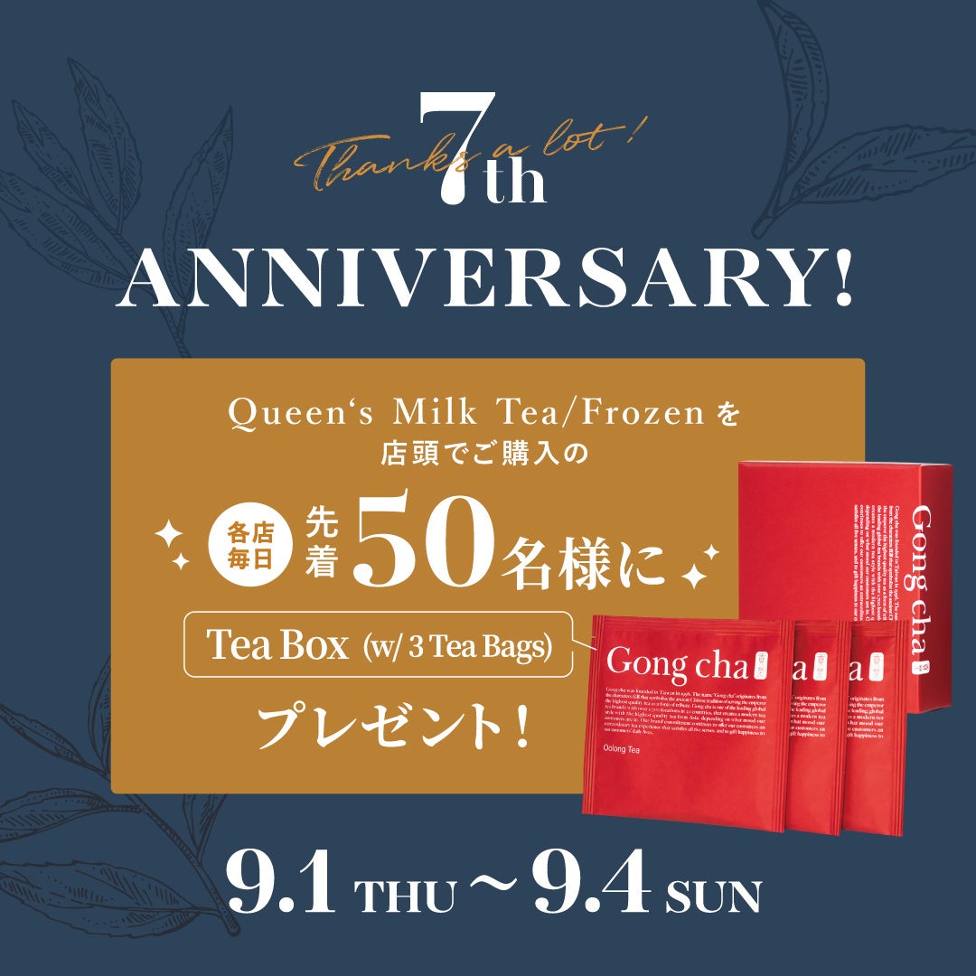 「Queen’s Milk Tea 」「Queen’s Frozen Tea 」のネーミングは、世界三大紅茶の一つと言われる「キームンティー」から。蘭や薔薇の花をも想わせる香りの「キームンティー」は、英国王室で女王の誕生日に飲まれるお茶としても知られています。日本上陸7周年を記念し、グローバルティーブランド Gong cha のこだわりをお伝えする、気品と祝祭感に満ちたティーとしてセレクトしました。