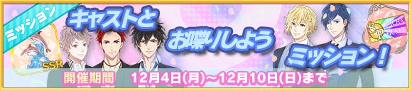 開催期間12月4日(月)~12月10日(日)までの7日間《キャストとお喋りしよう》ミッションを開催します!お好きなキャストにメッセージを送り、条件を満たすと報酬がGET出来ます♪