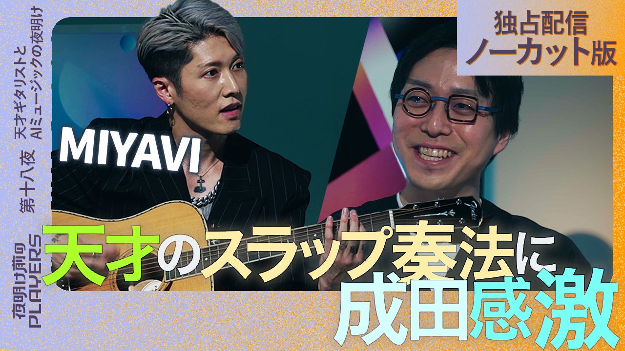 ミュージシャン・ギタリストとして世界で活躍するMIYAVIさんが、成田さんと夜明け前のPLAYERSにて初対談。番組内ではトークだけでなくあの超絶ギター奏法も披露?