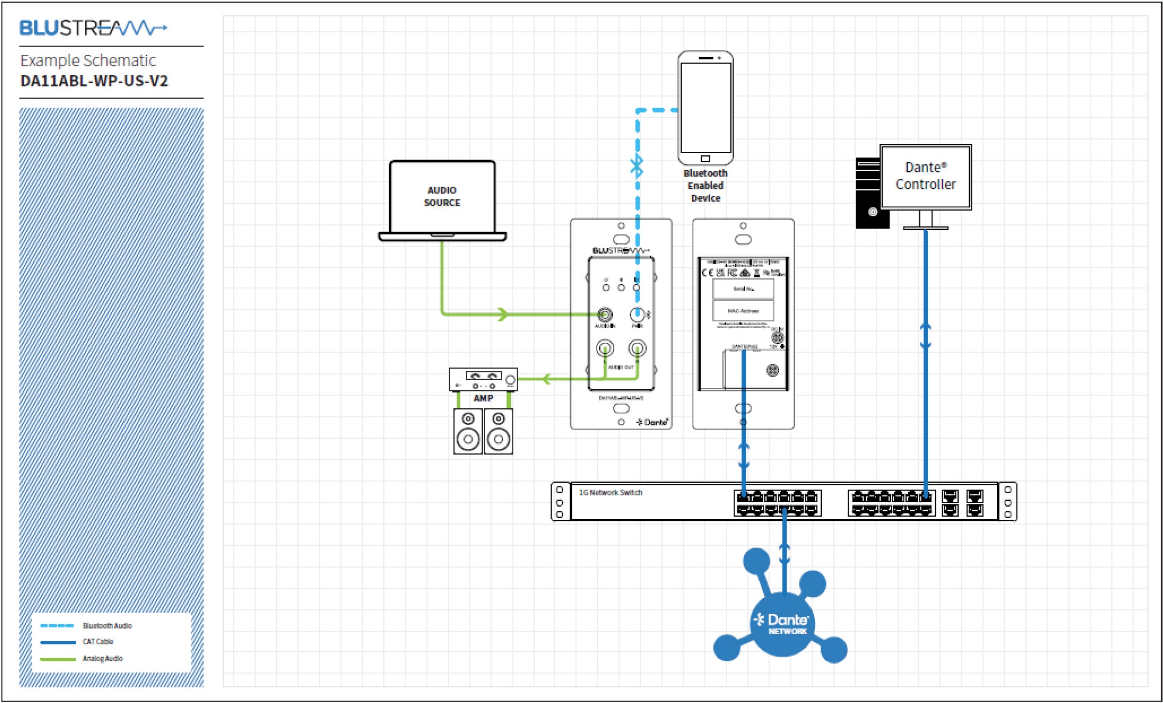 Blustream社製 ウォールプレート型 Bluetooth/アナログDanteコンバータ発売のご案内