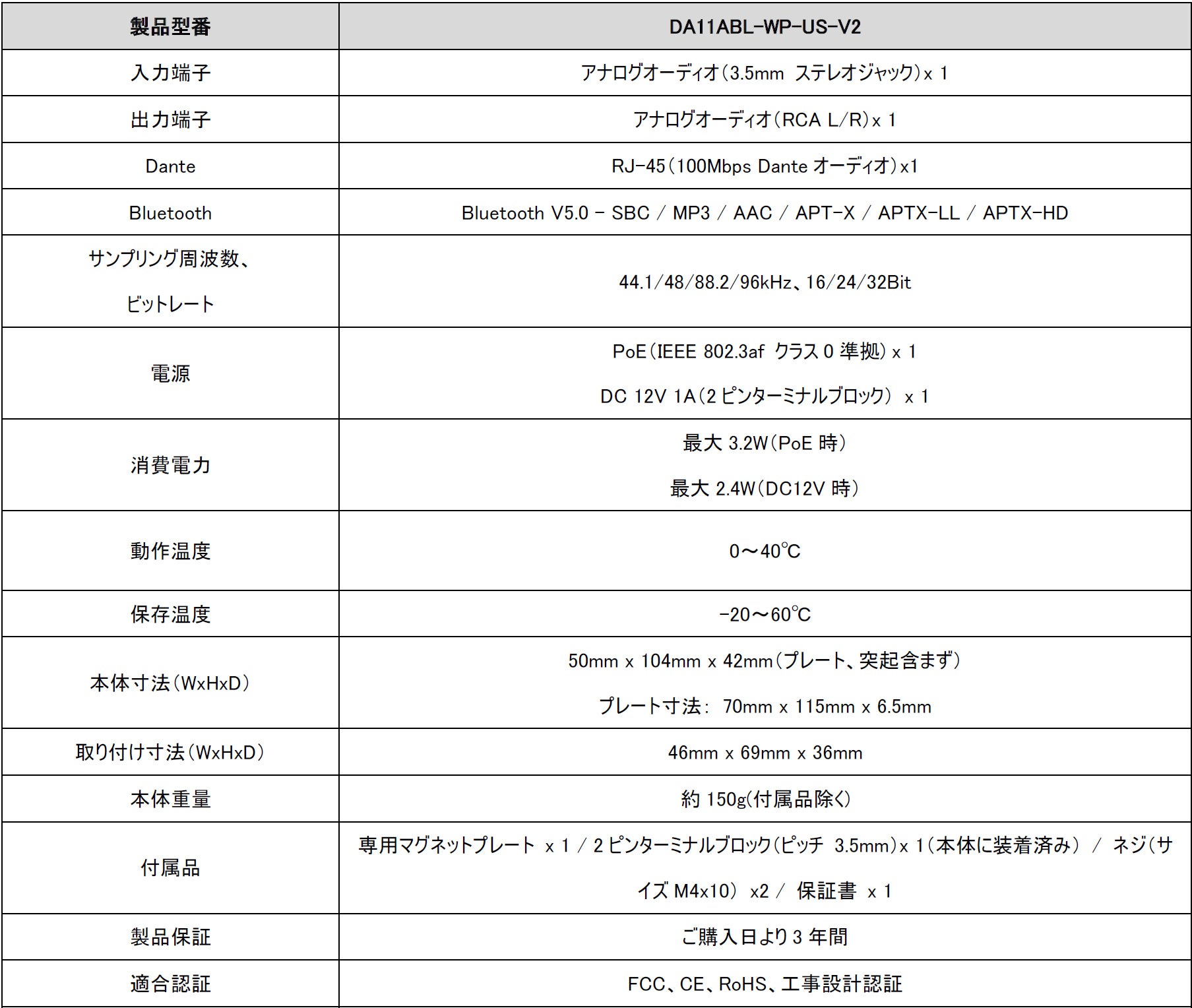 [型番:DA11ABL-WP-US-V2]