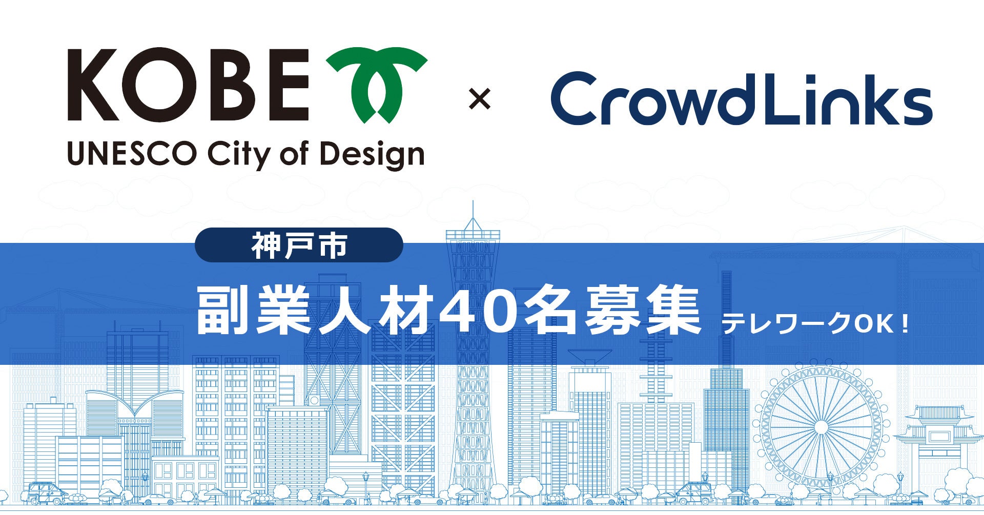 企業と個人をつなぐオンライン人材マッチングプラットフォームを開発・運営する株式会社クラウドワークス(本社:東京都渋谷区 代表取締役社長 兼 CEO:吉田 浩一郎 以下「当社」)が運営するハイクラスな副業・兼業マッチングプラットフォーム「クラウドリンクス」にて、兵庫県神戸市(市長:久元喜造 以下「神戸市」)の副業人材40名の公募を6月10日(金)より実施します。神戸市の副業人材公募は今回で3年目となります。