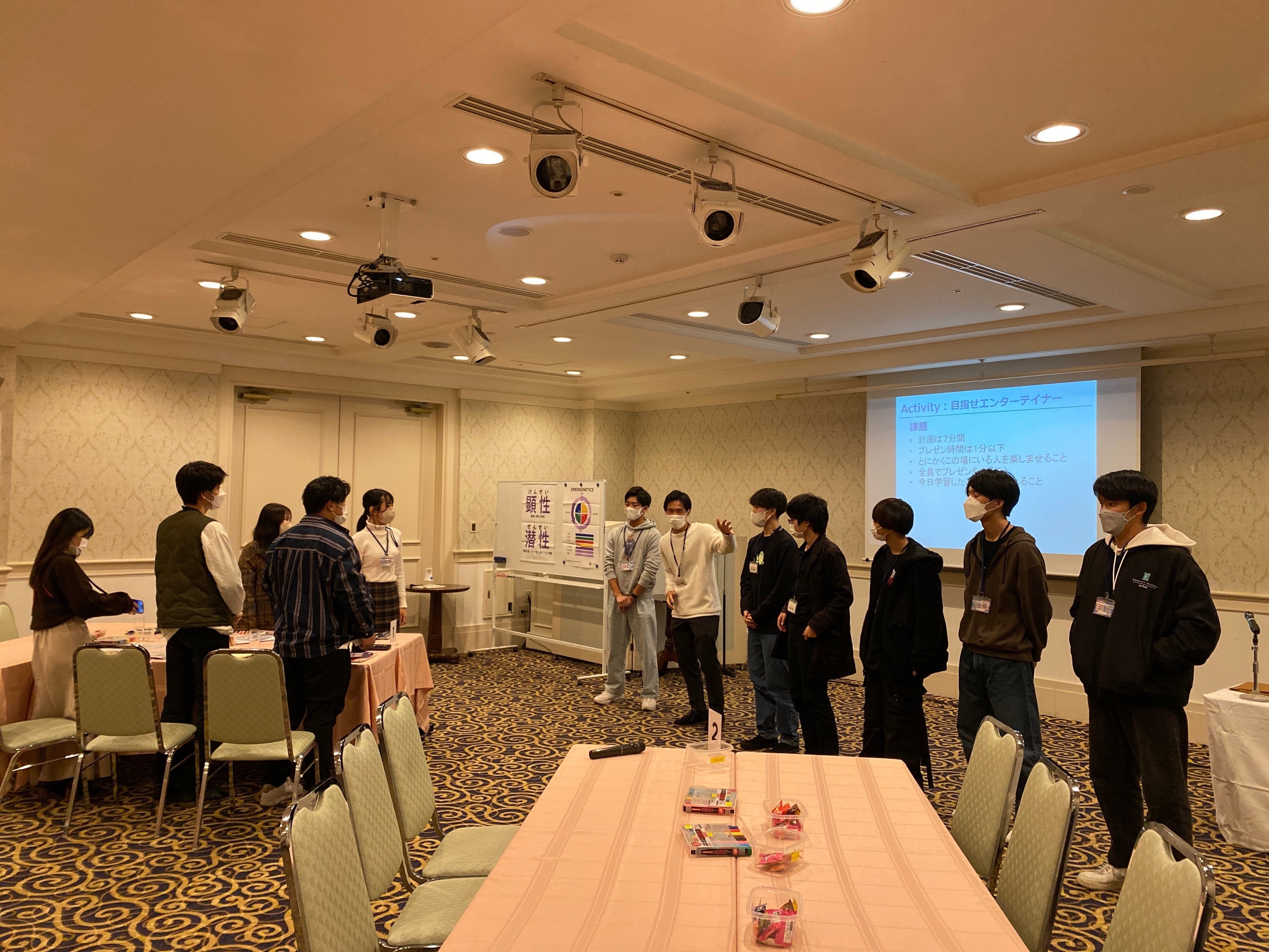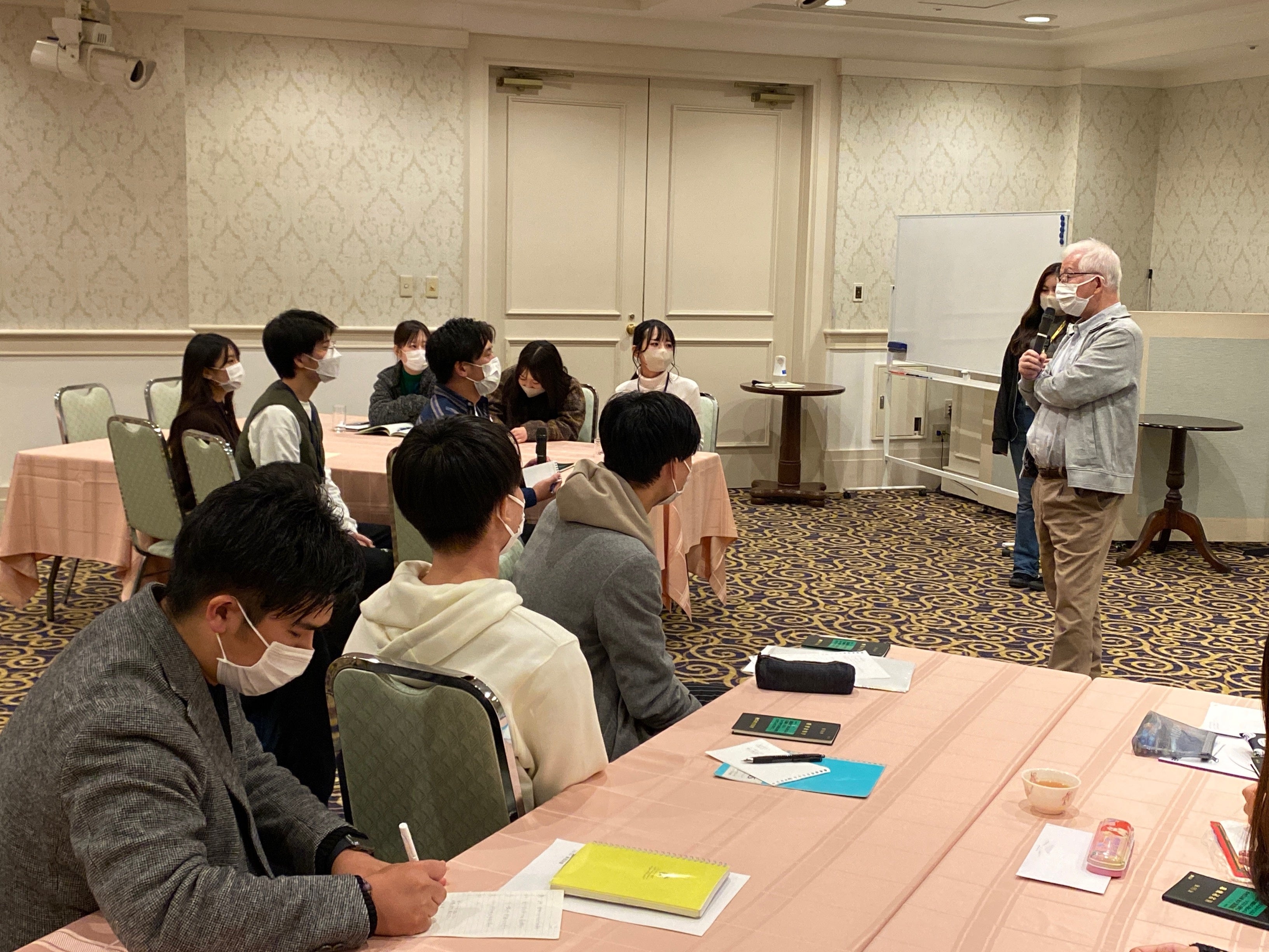 2日間の合宿では、エマジェネティックス®というツールを使った自己分析セミナーや、代表の小山の講 演、ワークショップなどを実施します。小山の講演では、学生が直接質問できる場も設けています。