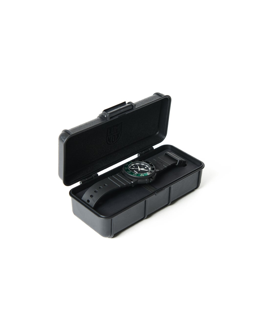 多くの反響があったコラボレーション第一弾で印象的だったのは、ルミノックス独自のCARBONOX™+金属プレートが演出するベゼルカラー。ダイバーズウォッチはベゼルの2トーンカラーで印象が大きく変わります。カラーを一新した今回の第二弾モデルもシンプルなデザインと機能美が特徴です。