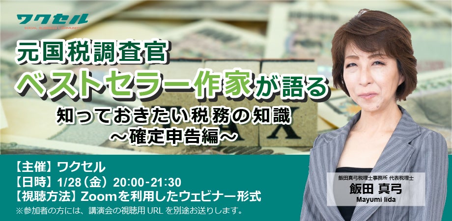 元国税調査官・ベストセラー作家が語る 知っておきたい税務の知識~確定申告編~ 1/28(金) 20:00- 【ワクセルオンライン講演会】