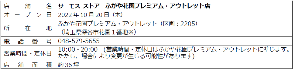 ■『サーモス ストア ふかや花園プレミアム・アウトレット』 店舗概要