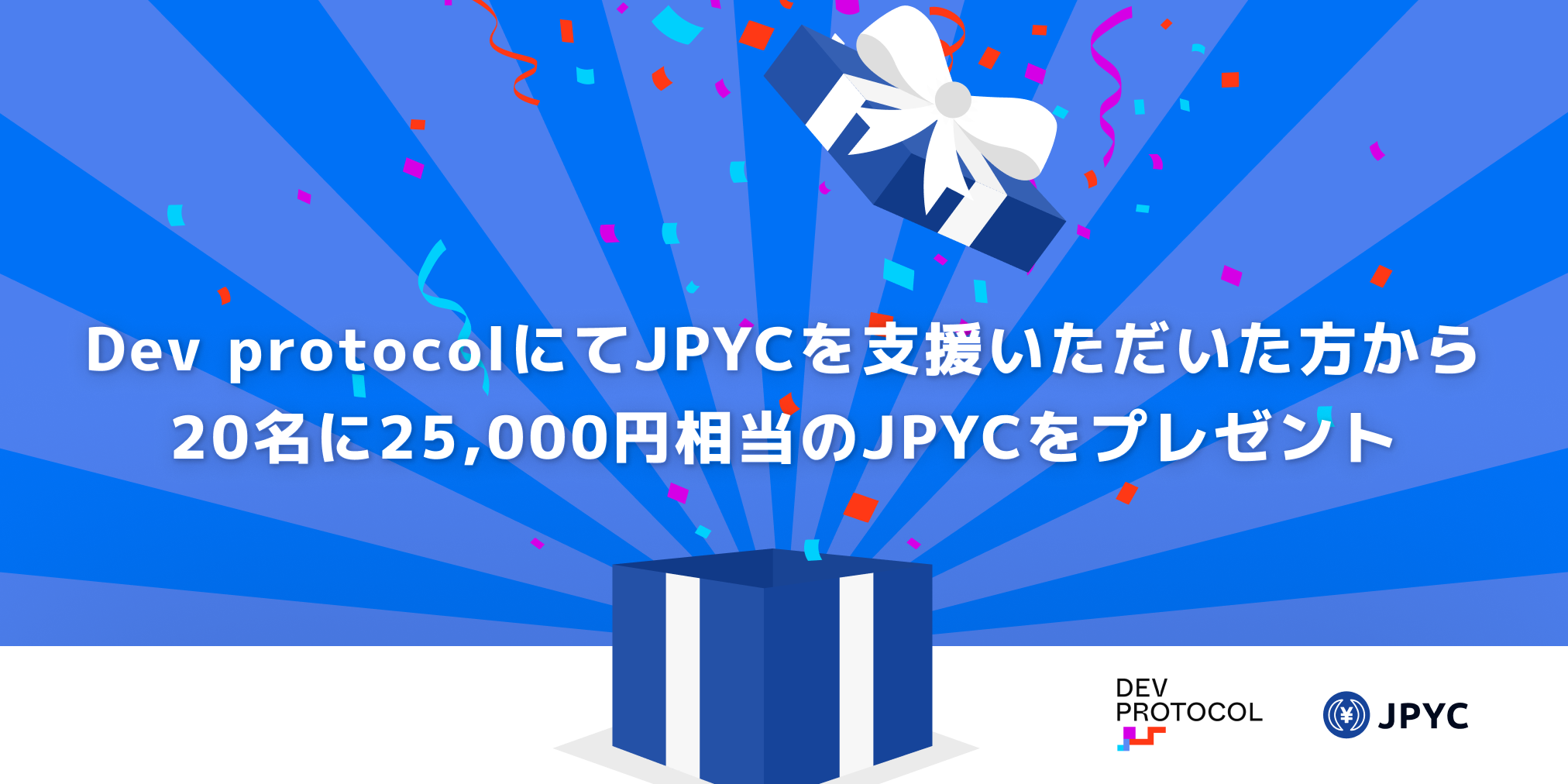 JPYC株式会社は、この度DEVプロトコルで弊社をご支援くださった方々のうち貢献度上位20名に25000JPYCずつ配布致します。