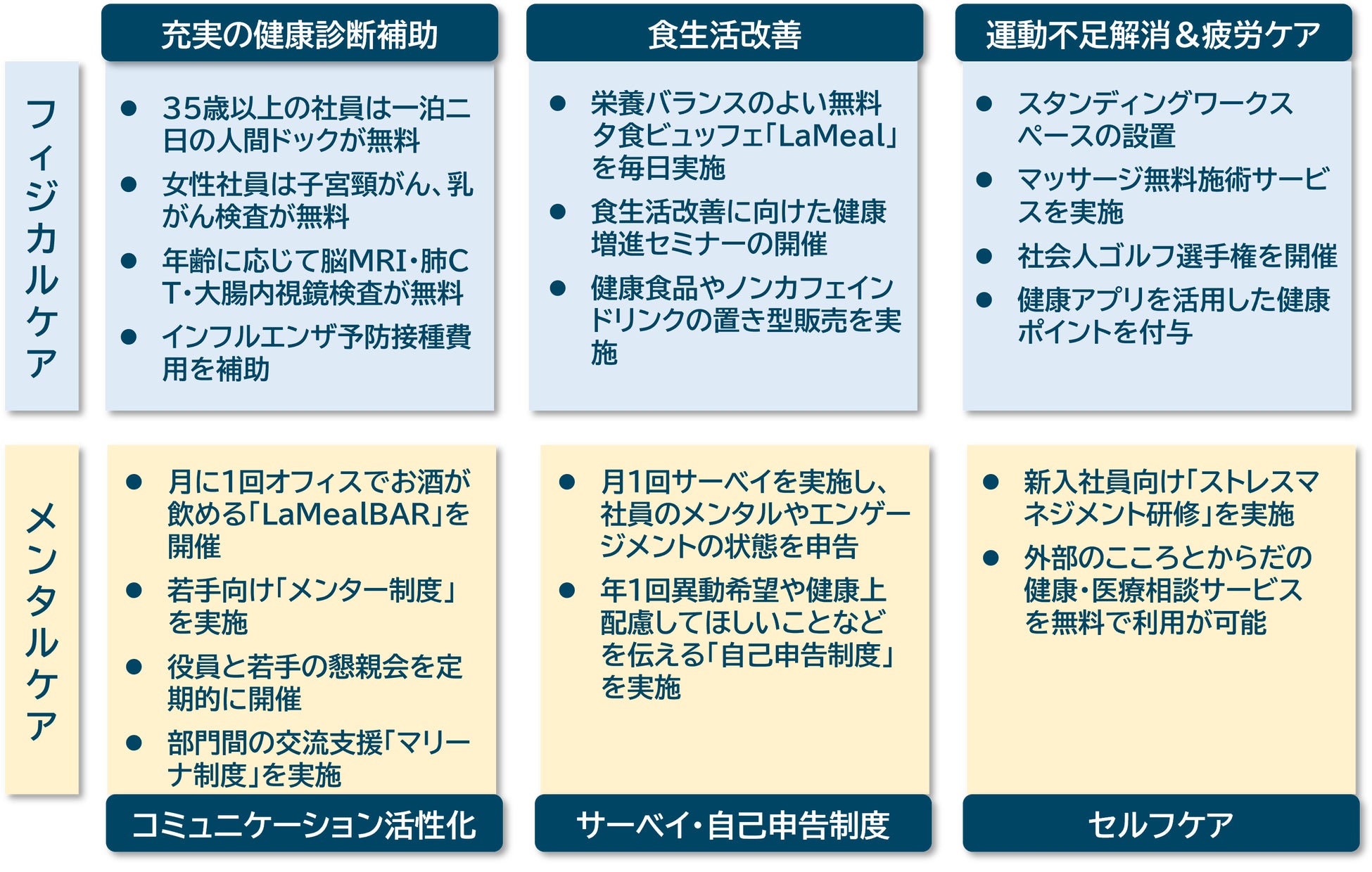 健康経営推進の基本方針:https://www.lakeel.com/ja/company/philosophy/health-management.html