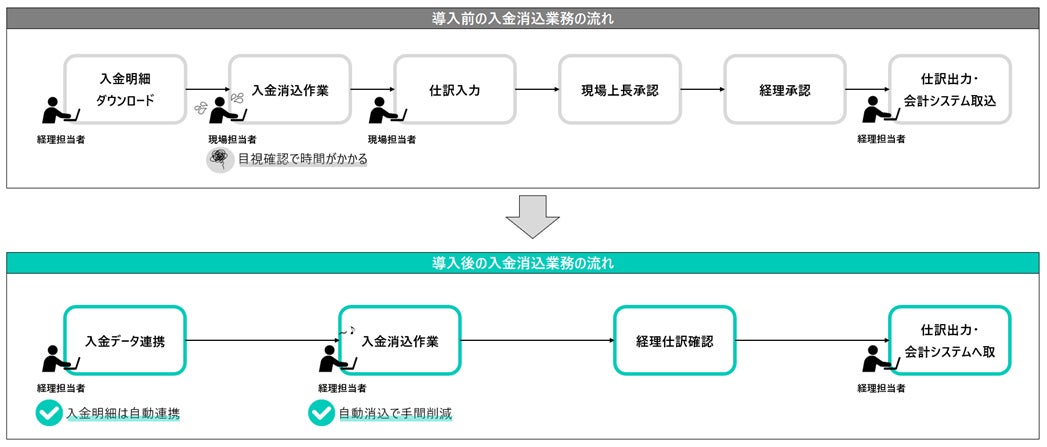特に入金消込業務は入金データと請求書を目視でチェックしていて、かなり時間がかかっていた担当者もいましたので、本来の業務に使える時間が増えていて、現場の担当者はとても喜んでくれています。