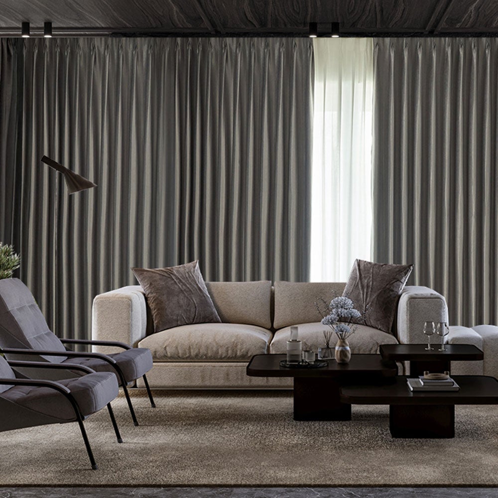 遮光・遮熱・保温・防炎といった高い機能性を備え、月明かりのような艶と立体感あるデザインで、美しく快適な窓辺を演出します。