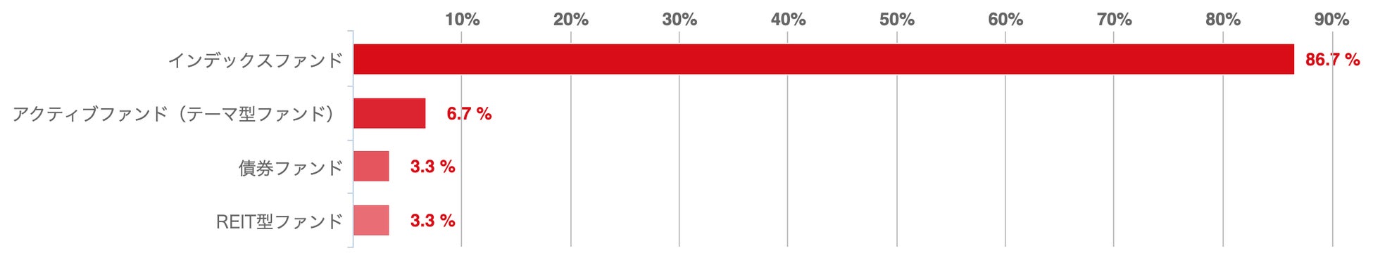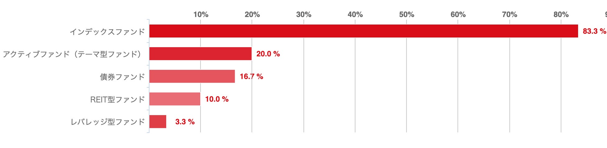 また、「アクティブファンド(テーマ型ファンド)」も20.0%と一定の人気を集めており、リターンを追求する傾向にある60代から支持を得ていることが推測される。