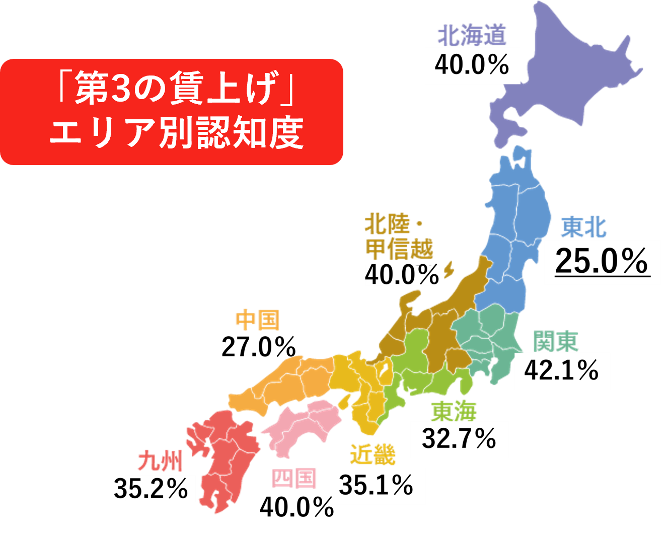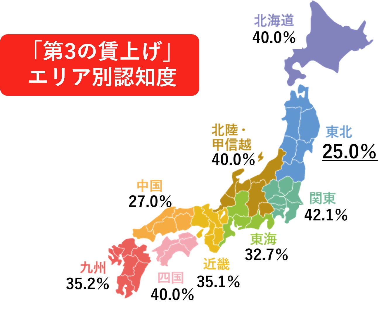 このように賃上げだけでは対応が難しい局面を迎える2026年は、給与改定と「第3の賃上げ」を組み合わせた“ハイブリッドな賃上げ策”の重要性が一層高まると考えられます。しかし、大都市圏を除く地域では、「第3の賃上げ」の認知はまだ十分とは言えません。関東圏の「第3の賃上げ」認知率が42.1%であるのに対し、東北エリアは、25.0%と最も低い状況です。