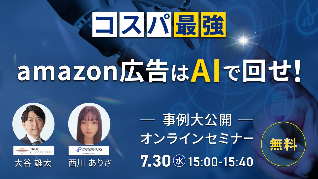 トゥルーコンサルティング株式会社(本社:東京都港区、代表取締役:萱沼 真吾)は、2025年7月30日()に、Amazon広告をAIで効率運用する最新ノウハウを解説する無料オンラインセミナー